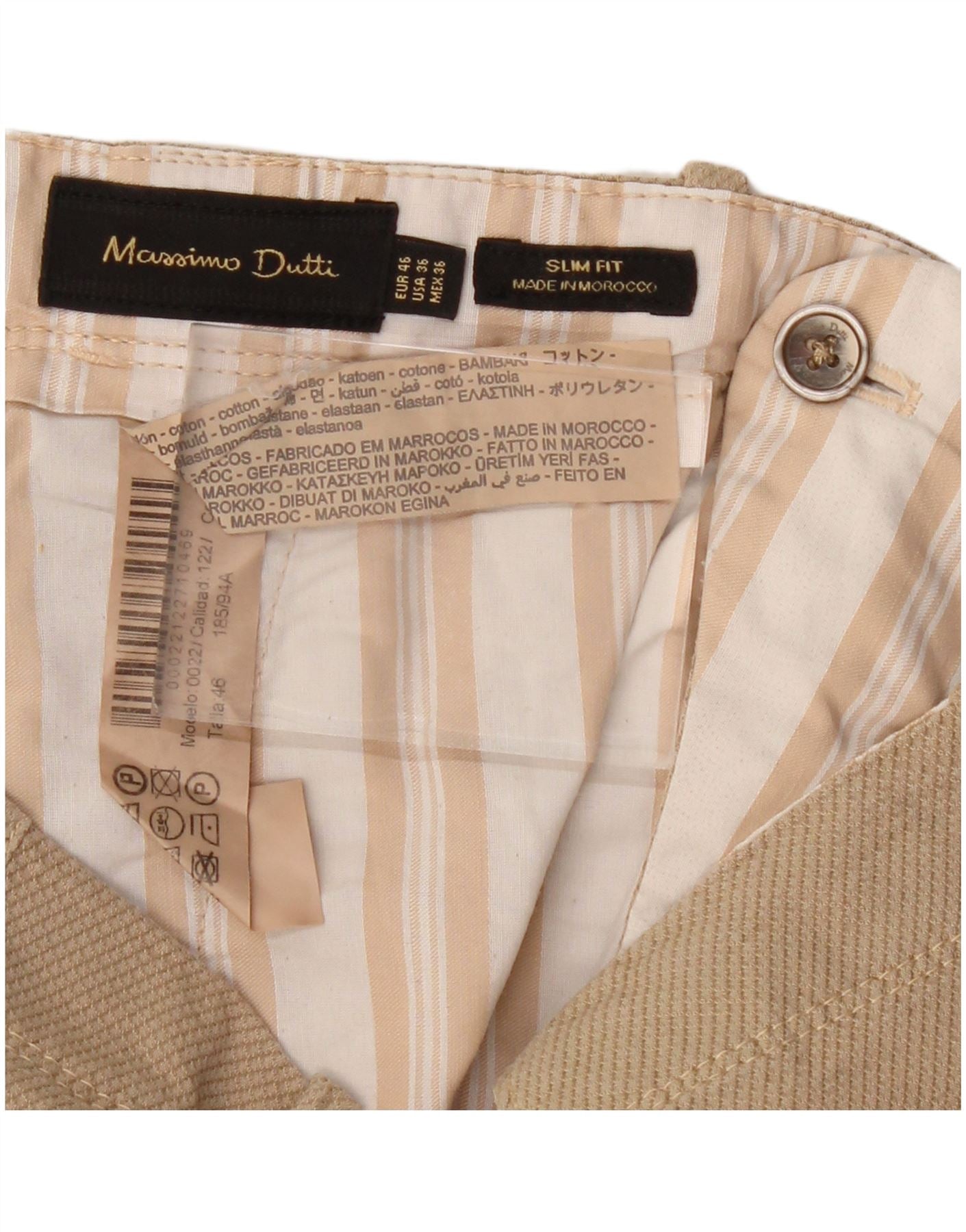 Мужские брюки-чиносы MASSIMO DUTTI Slim Fit EU 46 XL W36 L30, бежевый хлопок