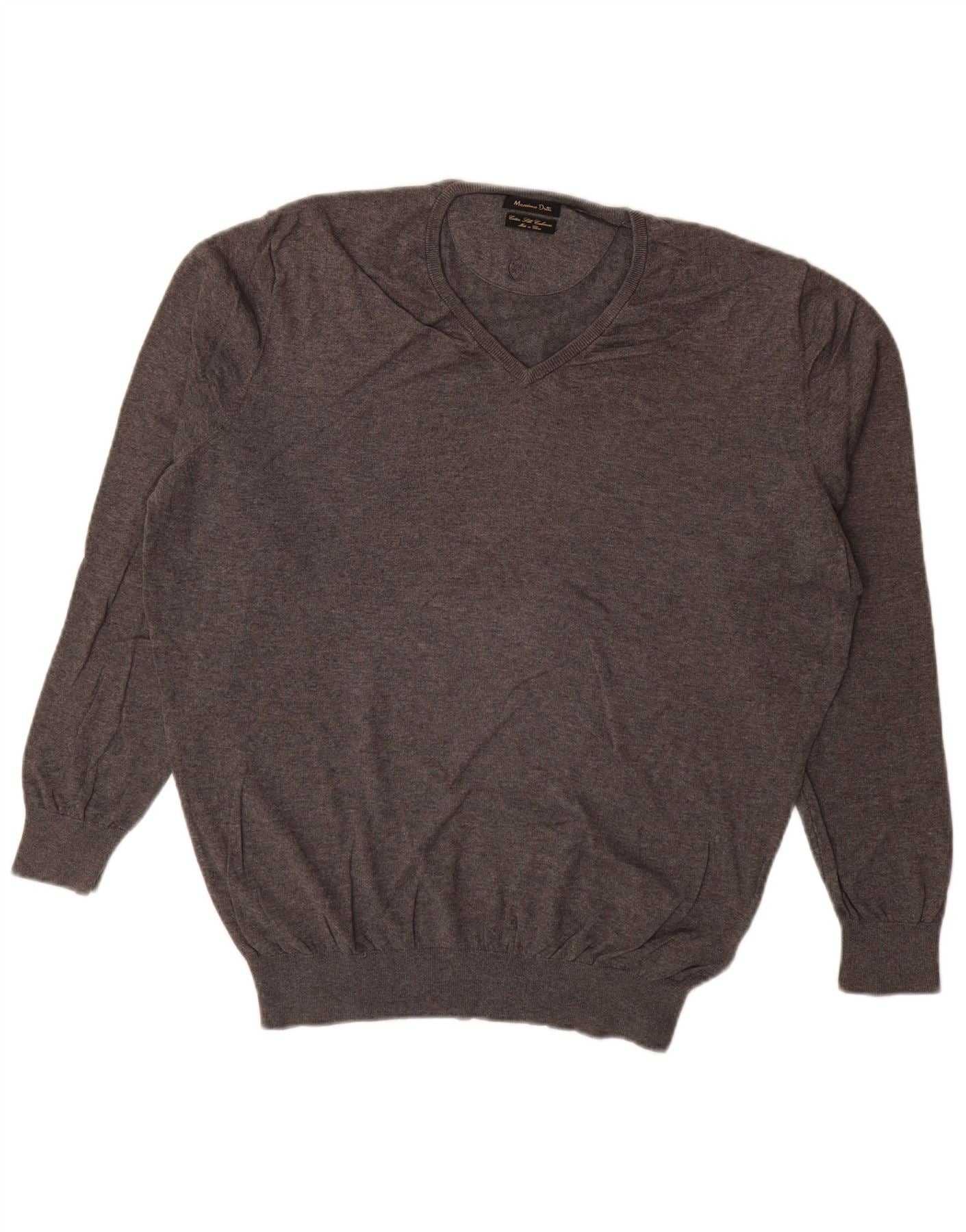 MASSIMO DUTTI Мужской джемпер с v-образным вырезом XL, серый хлопок