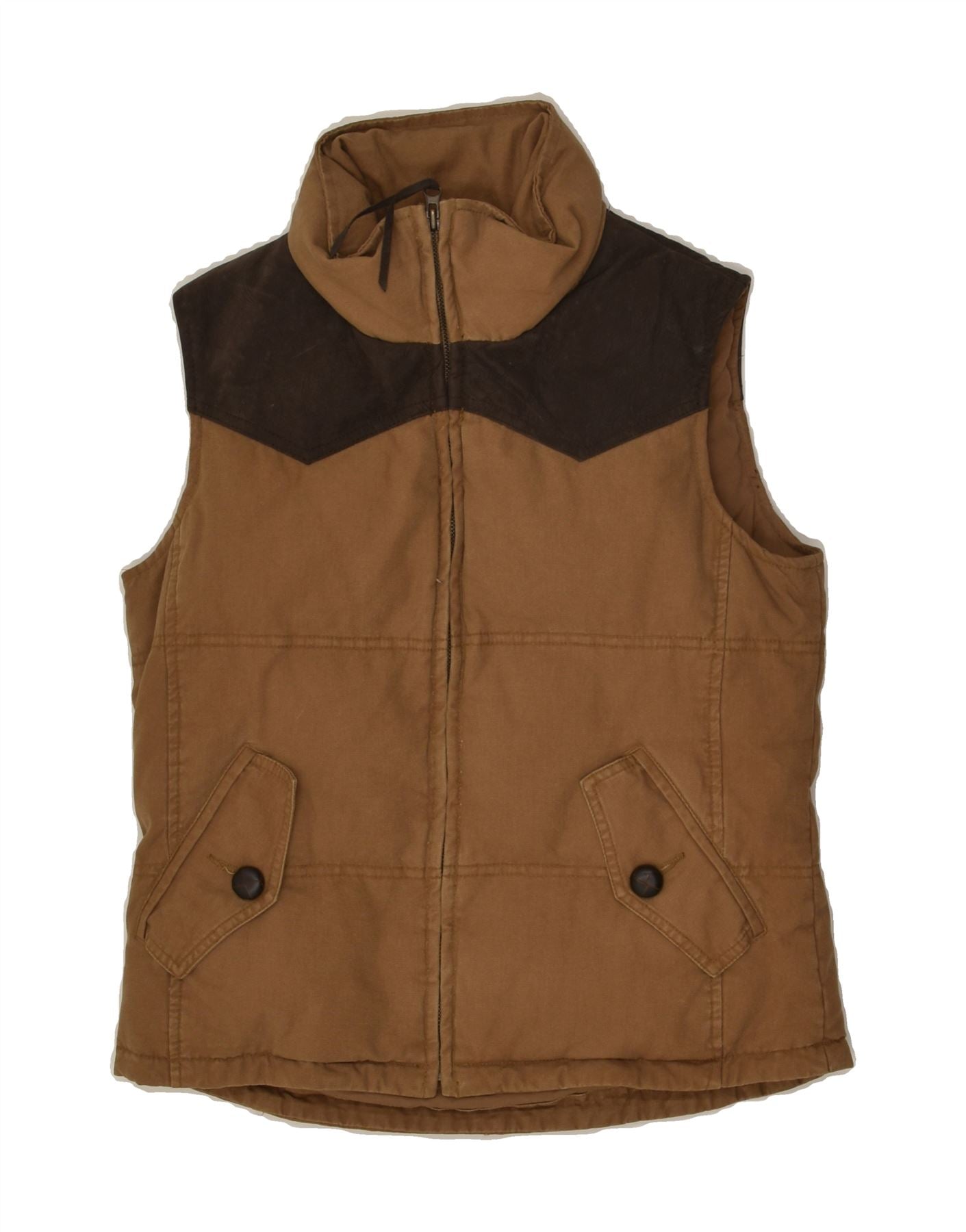 MASSIMO DUTTI Womens Padded Gilet UK 10 Small Brown Colourblock Cotton