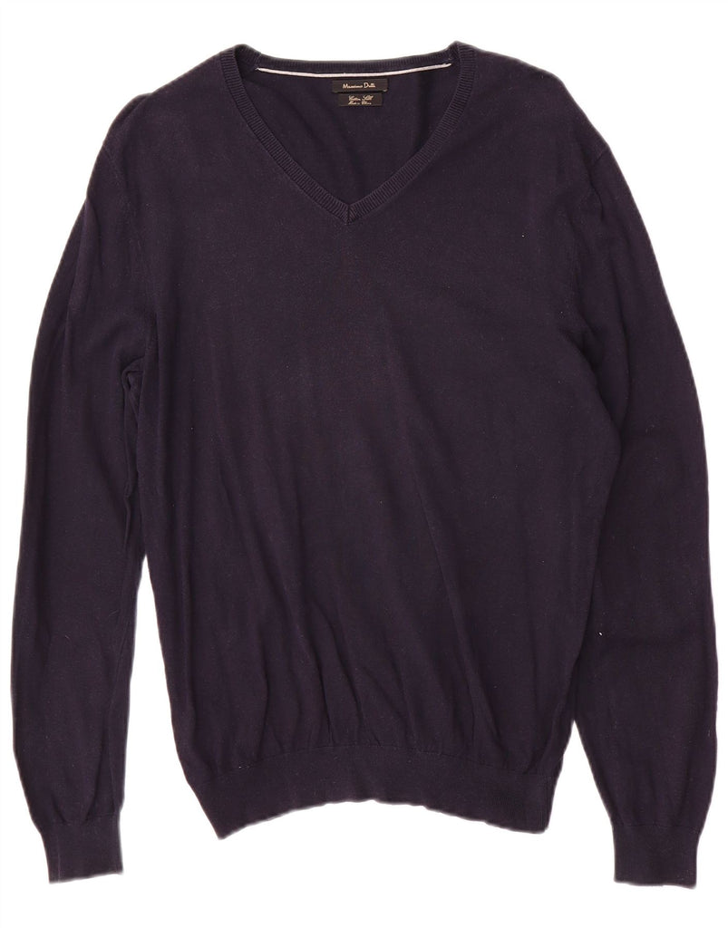 MASSIMO DUTTI Womens V-Neck Jumper Sweater UK 16 Large Navy Blue
