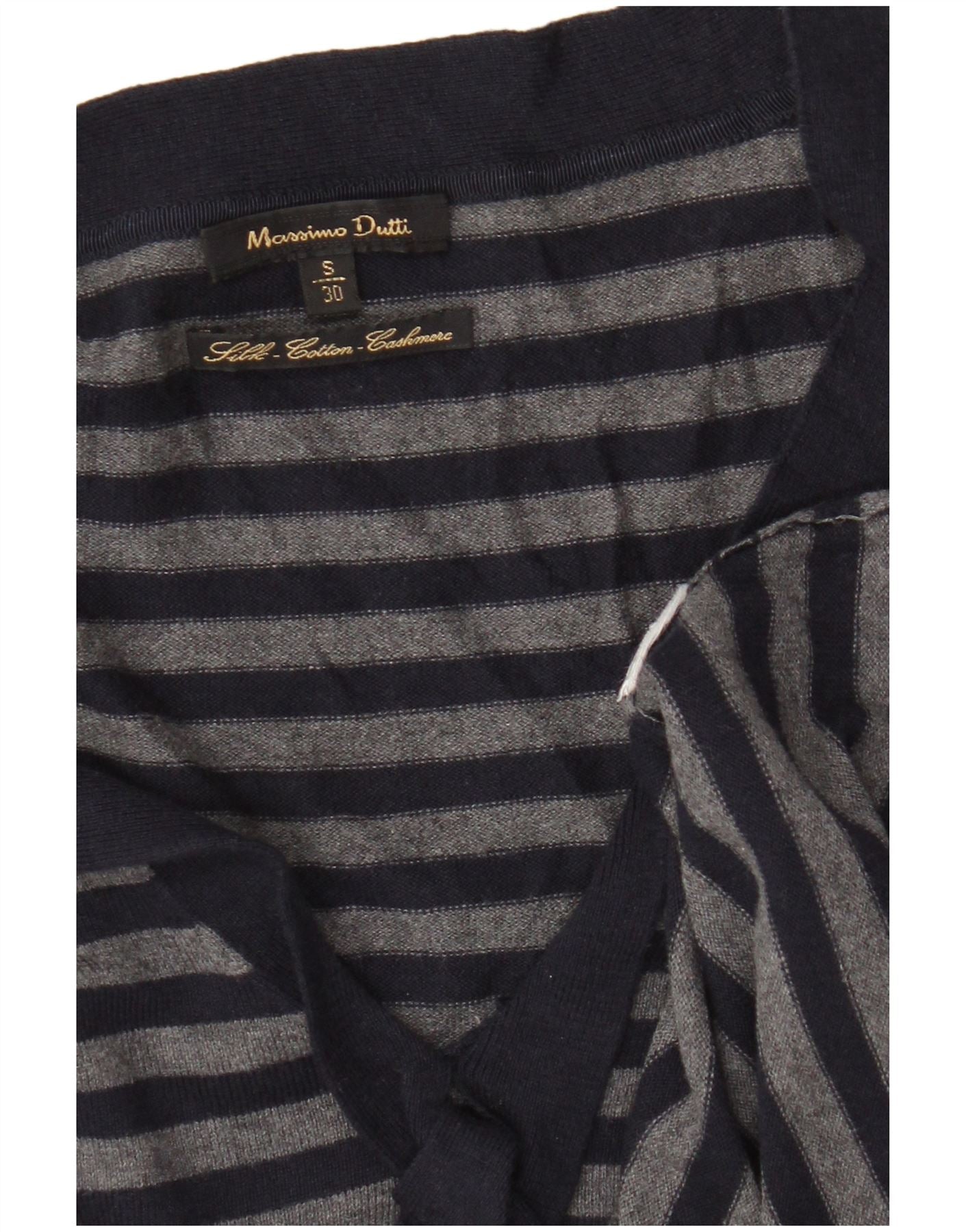 Женский джемпер с v-образным вырезом Massimo Dutti UK 8, маленький темно-синий в полоску