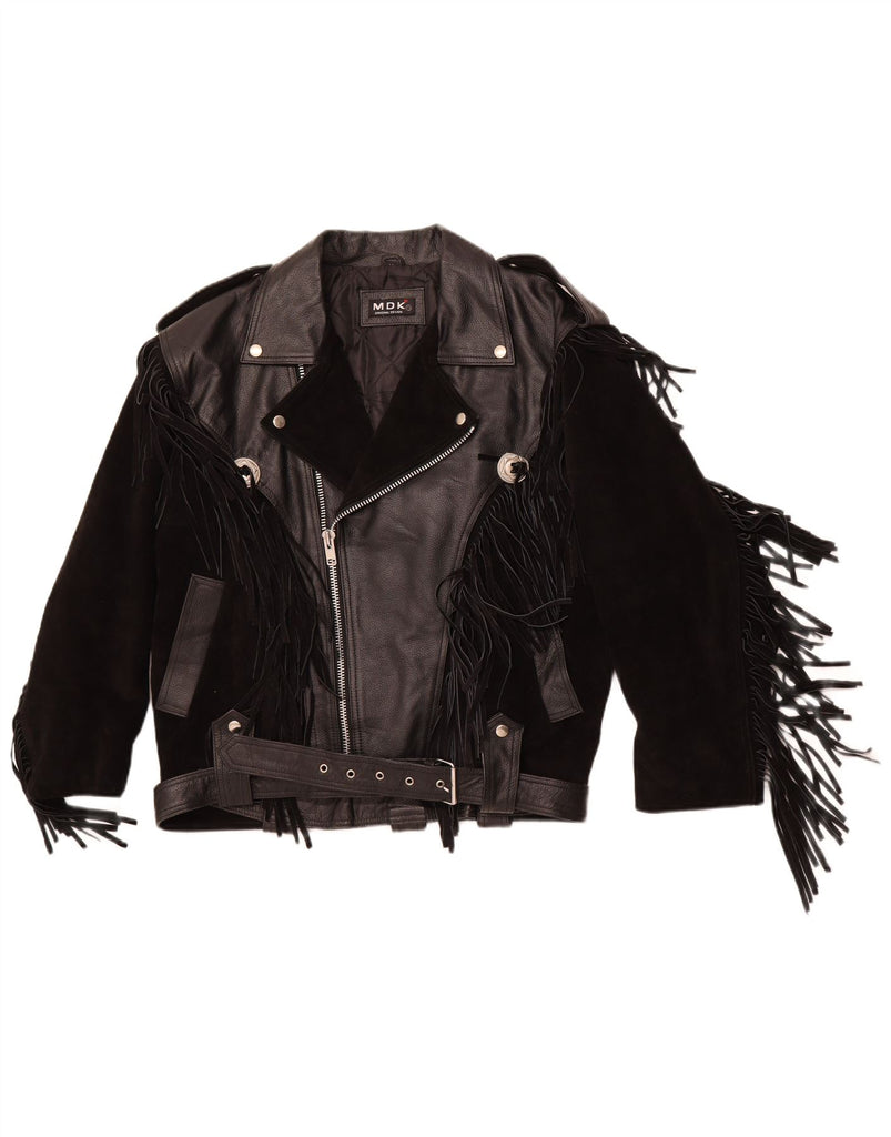 Женская кожаная косуха свободного кроя MDK в стиле вестерн, Великобритания 14, средний черный