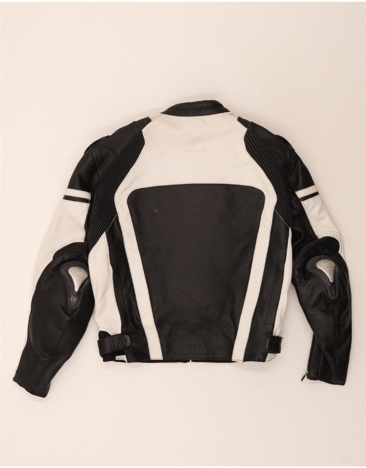 MERLIN Mens Leather Racer Jacket UK 38 Medium Black Colourblock Leather
