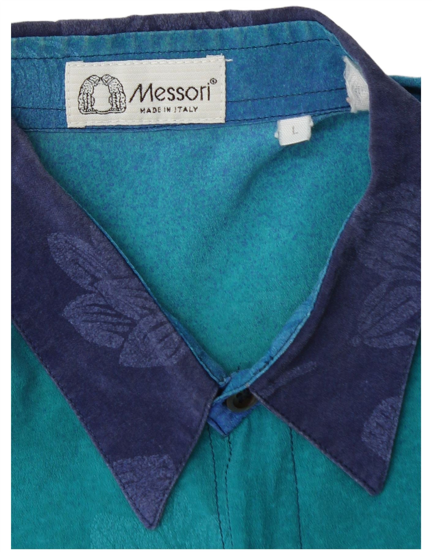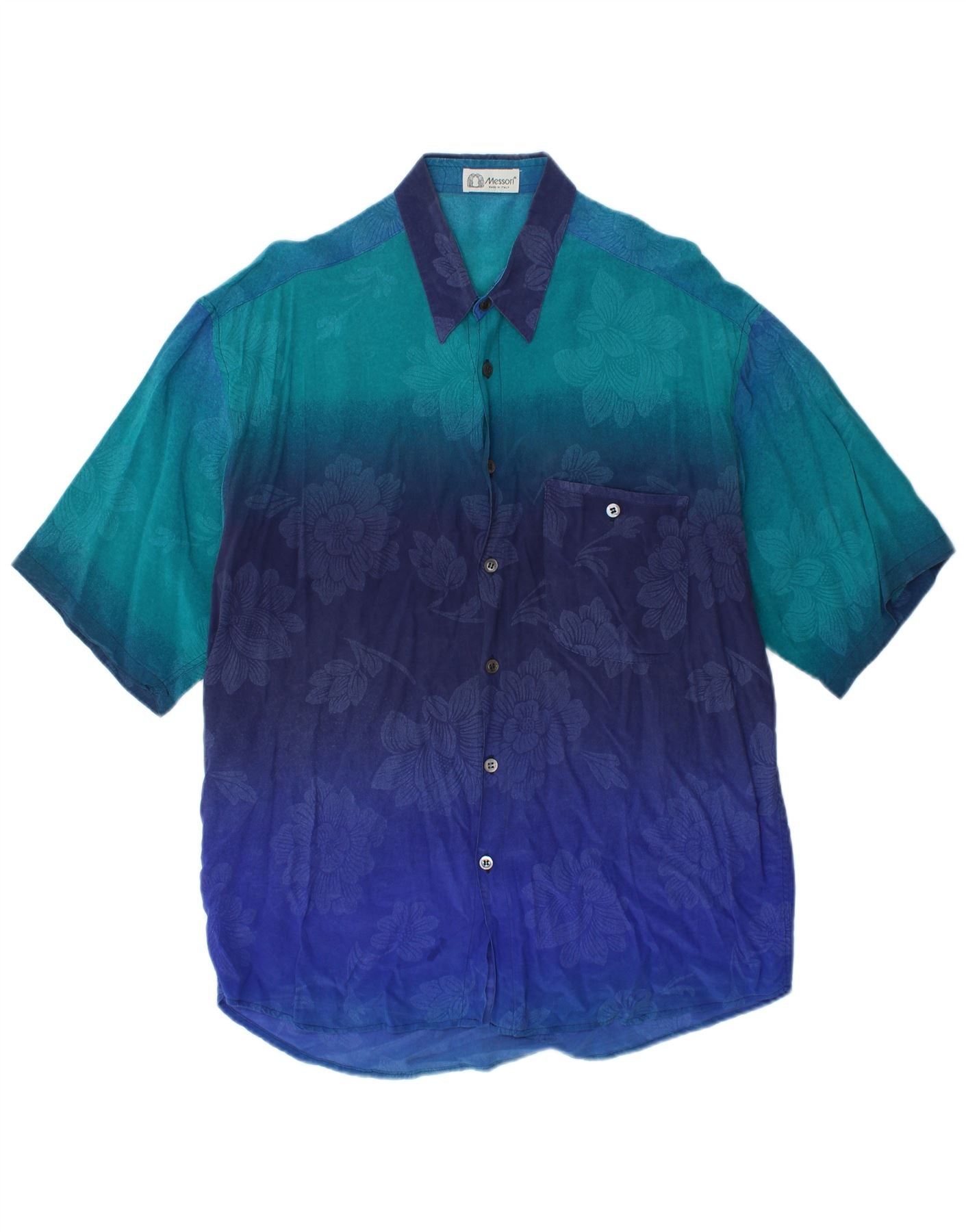 MESSORI Мужская рубашка с коротким рукавом, большая синяя с цветочным принтом