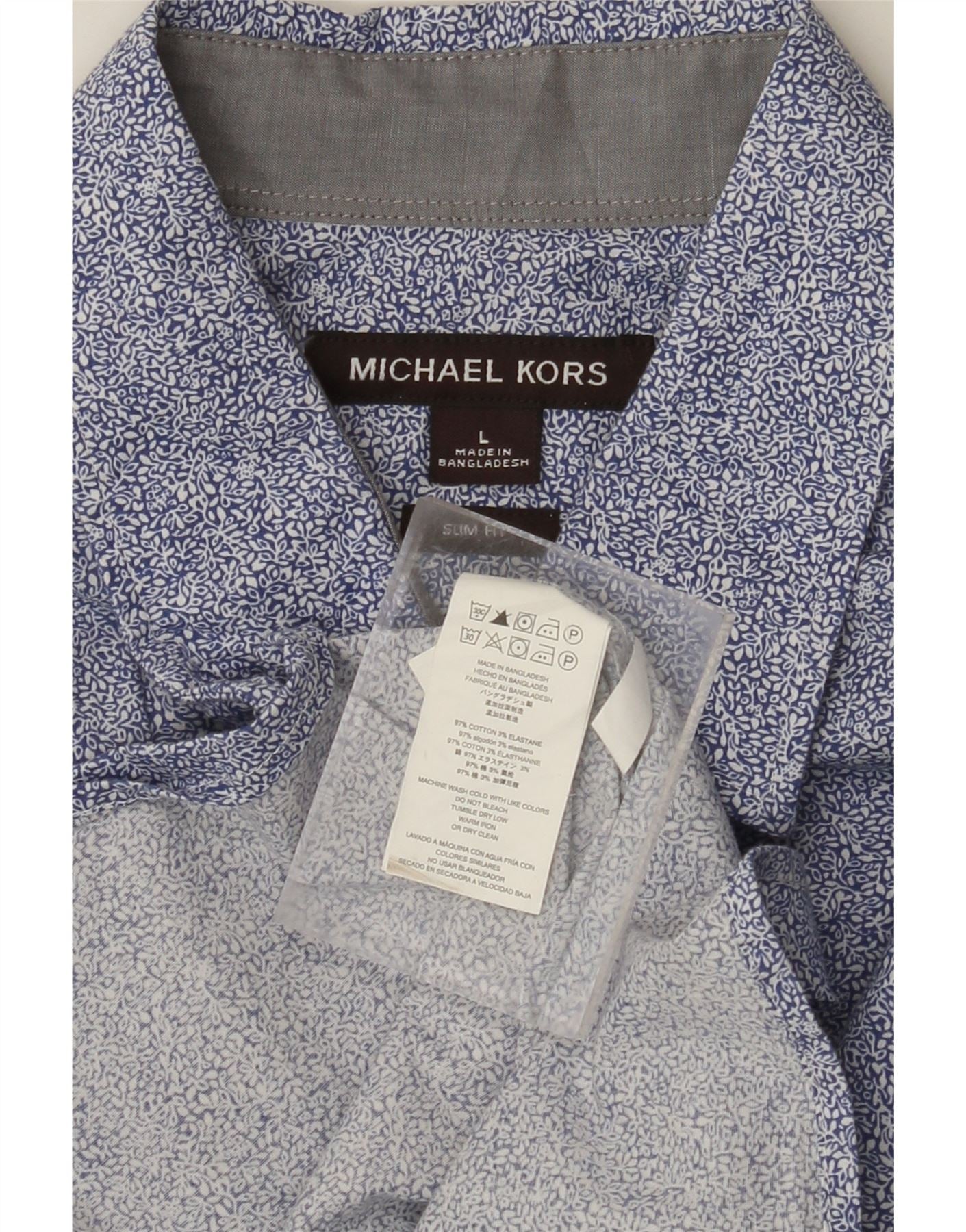 Мужская рубашка приталенного кроя MICHAEL KORS, большая синяя хлопковая рубашка с цветочным принтом