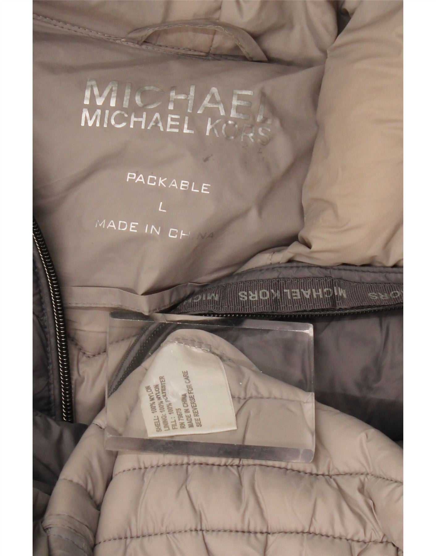 Женское стеганое пальто с капюшоном MICHAEL KORS UK 16, большой серый нейлон