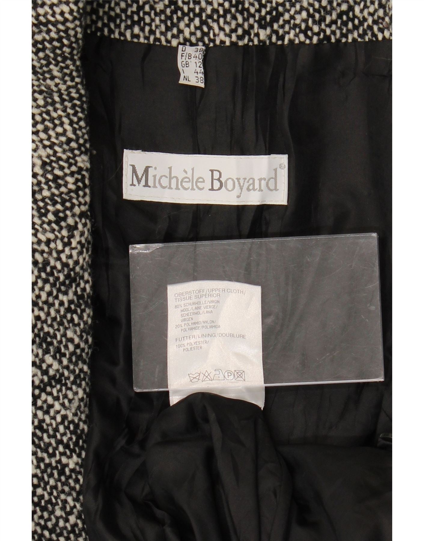 MICHELE BOYARD Женское пальто UK 12 Среднее черное шерстяное в крапинку