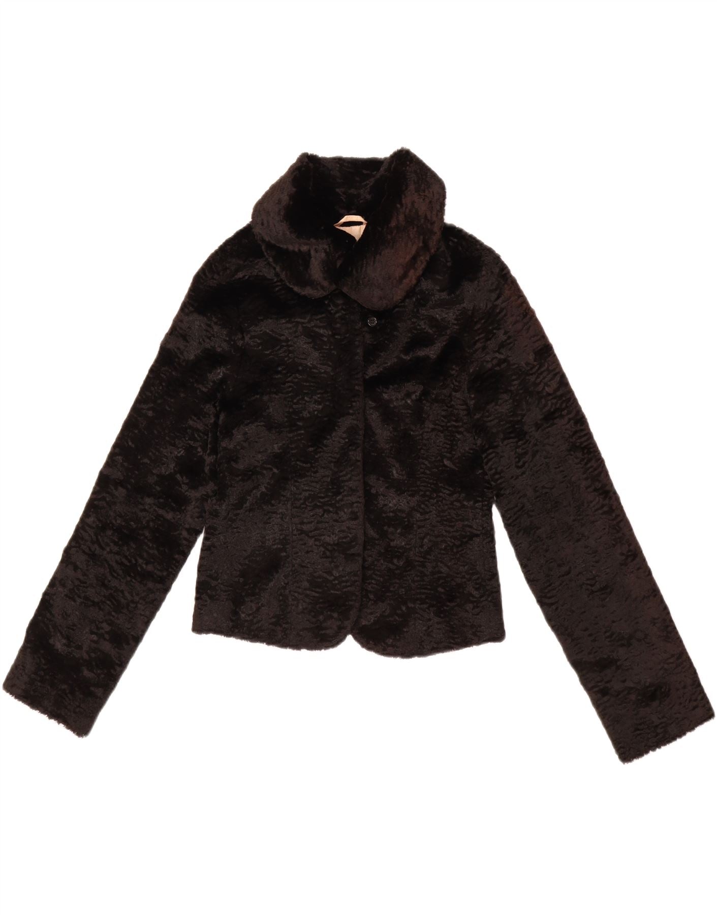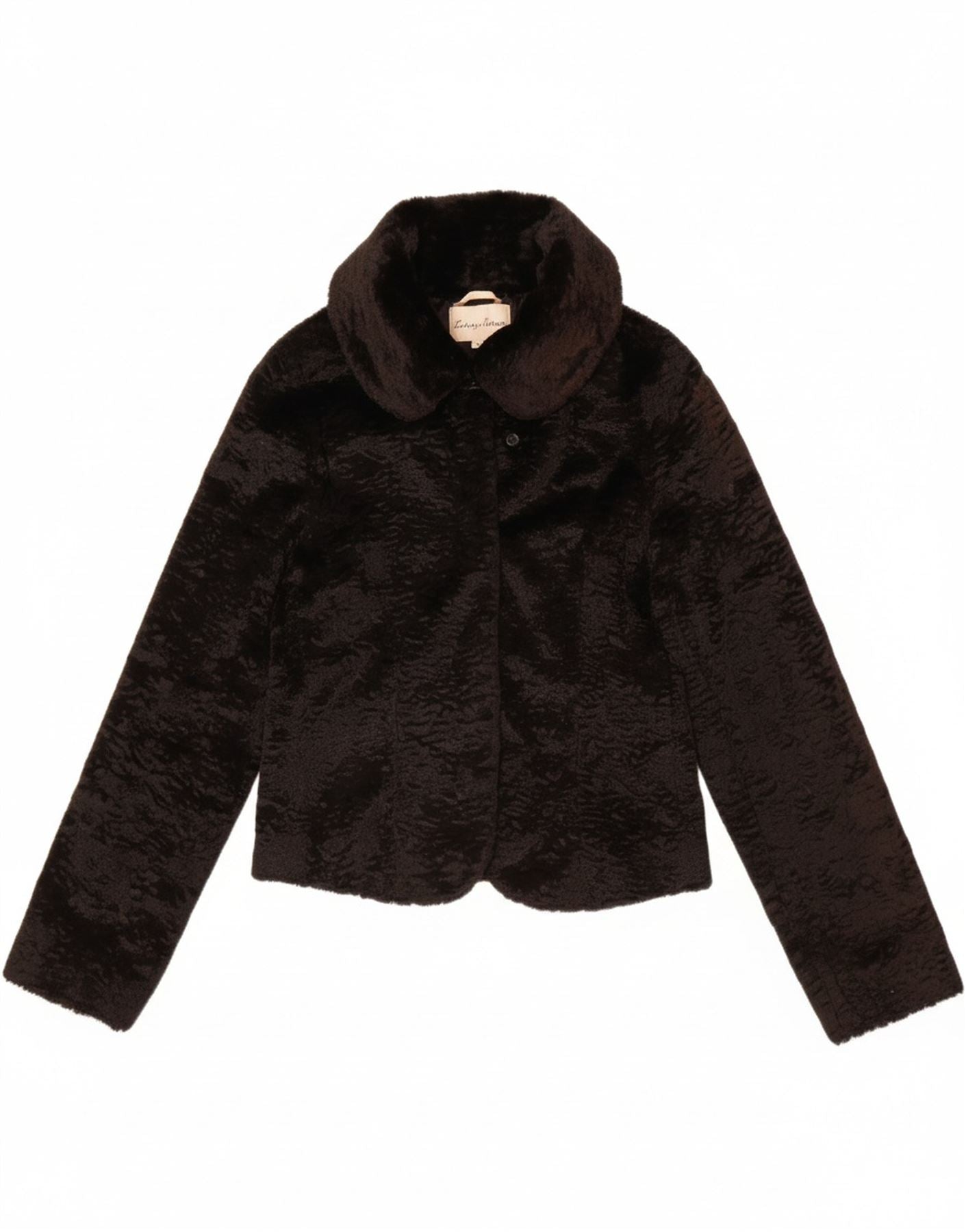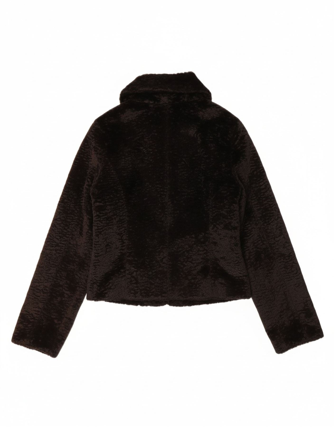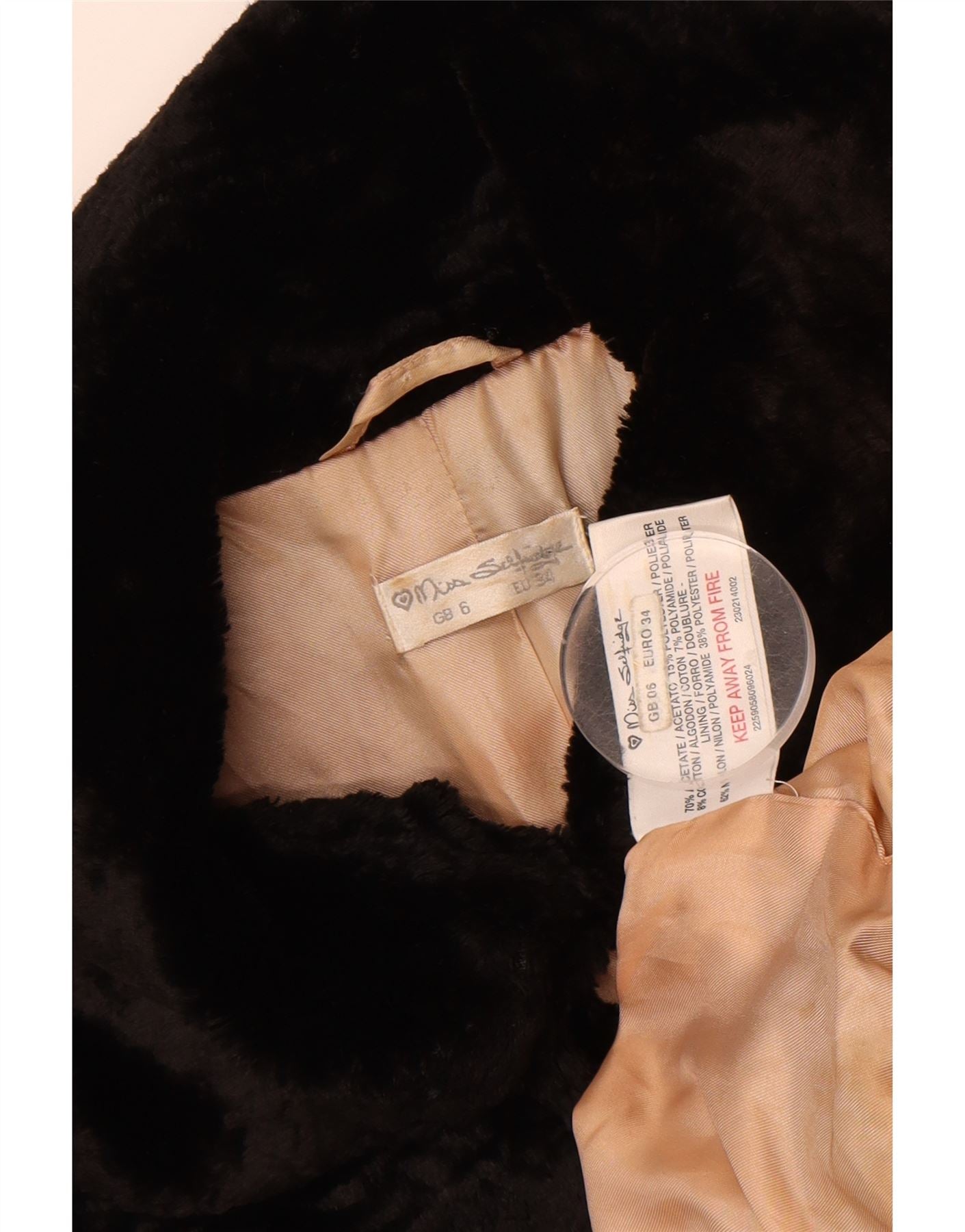 MISS SELFRIDGE Womens Crop Faux Fur Bomber Jacket UK 6 XS Black Acetate