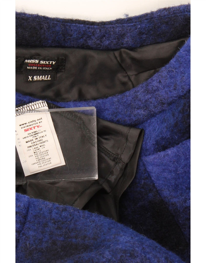 MISS SIXTY Womens 3/4 Sleeve Bodycon Dress UK 6 XS Blue Check Wool