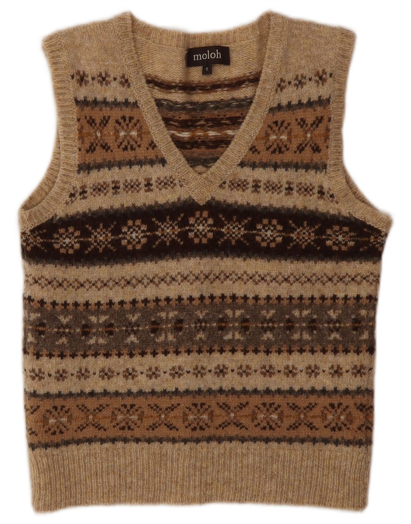 Женская майка MOLOH, размер 1, маленькая, коричневая, классическая, из шерсти с жаккардовым узором