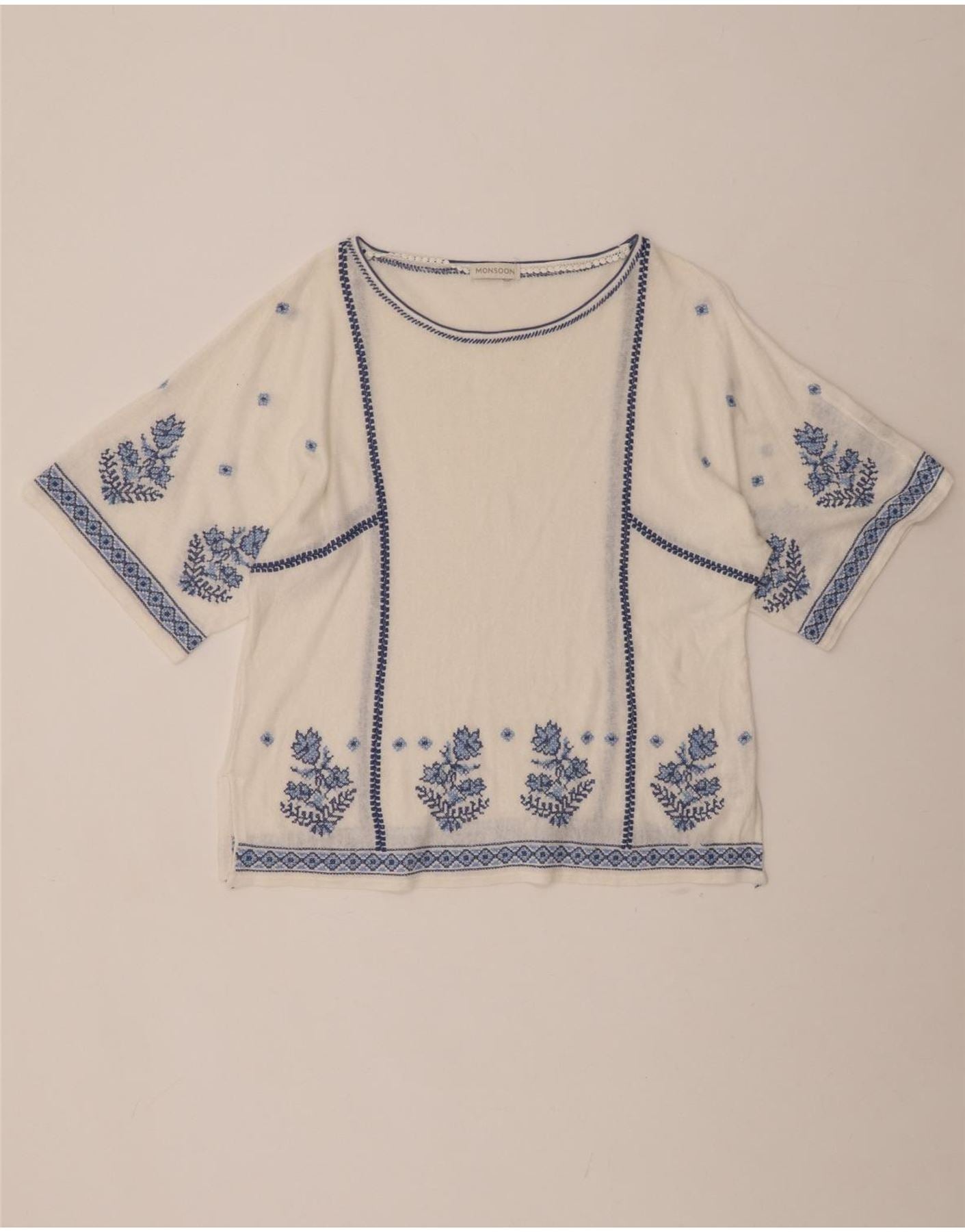 Женская блузка MONSOON Top UK 16, большой размер, белый лен с цветочным принтом