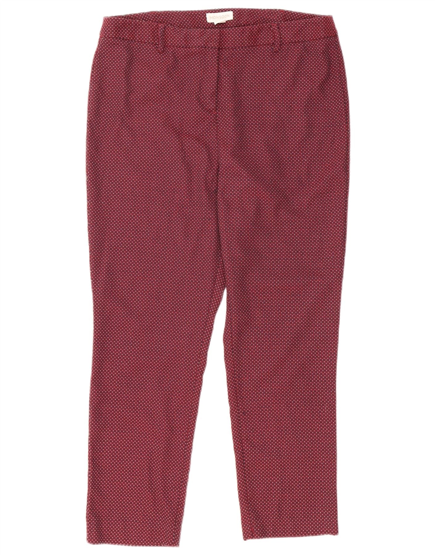 Женские укороченные брюки MONSONON UK 14, большие W32 L25, бордовые в пятнистом цвете