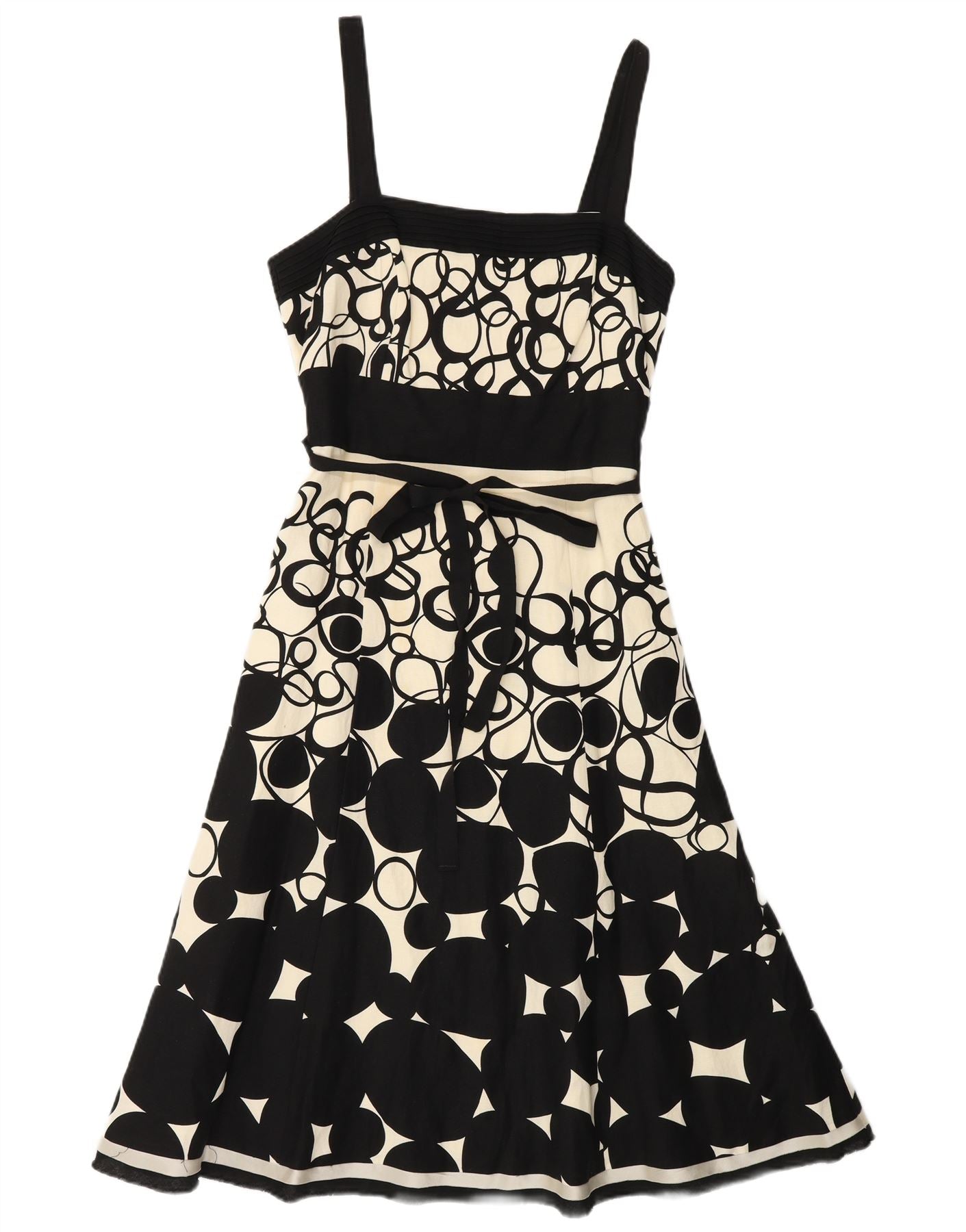 MONSOON Womens Sleeveless A-Line Dress UK 10 Small Black Geometric Linen