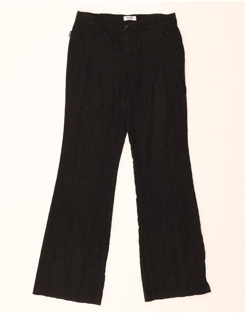 MOSCHINO Womens Bootcut Casual Trousers UK 12 Medium W28 L33 Black Floral