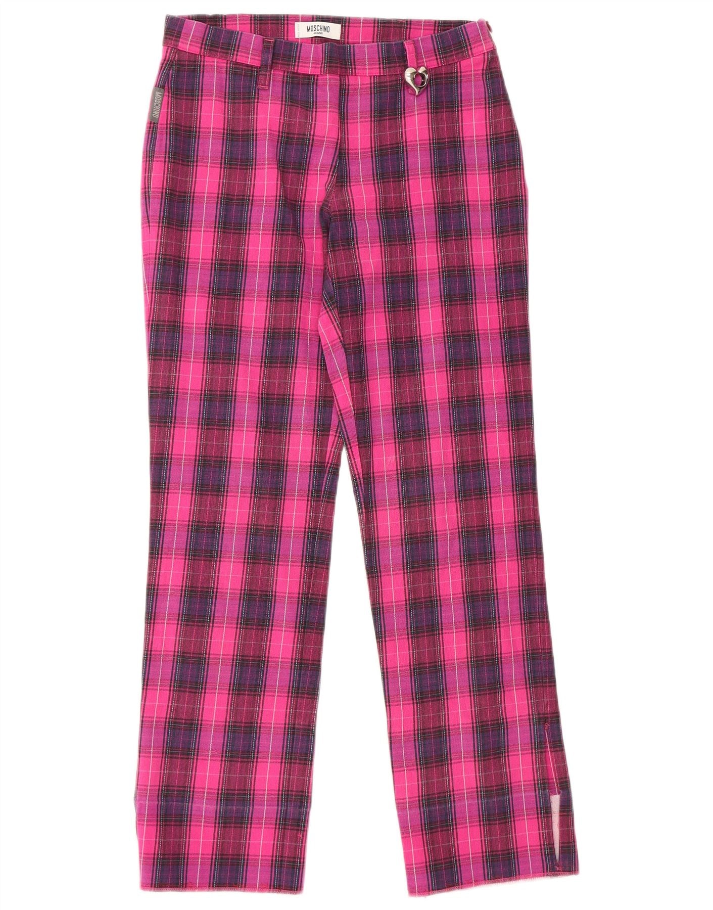 MOSCHINO Женские прямые повседневные брюки UK 10, маленькие W28 L28, розовые в клетку