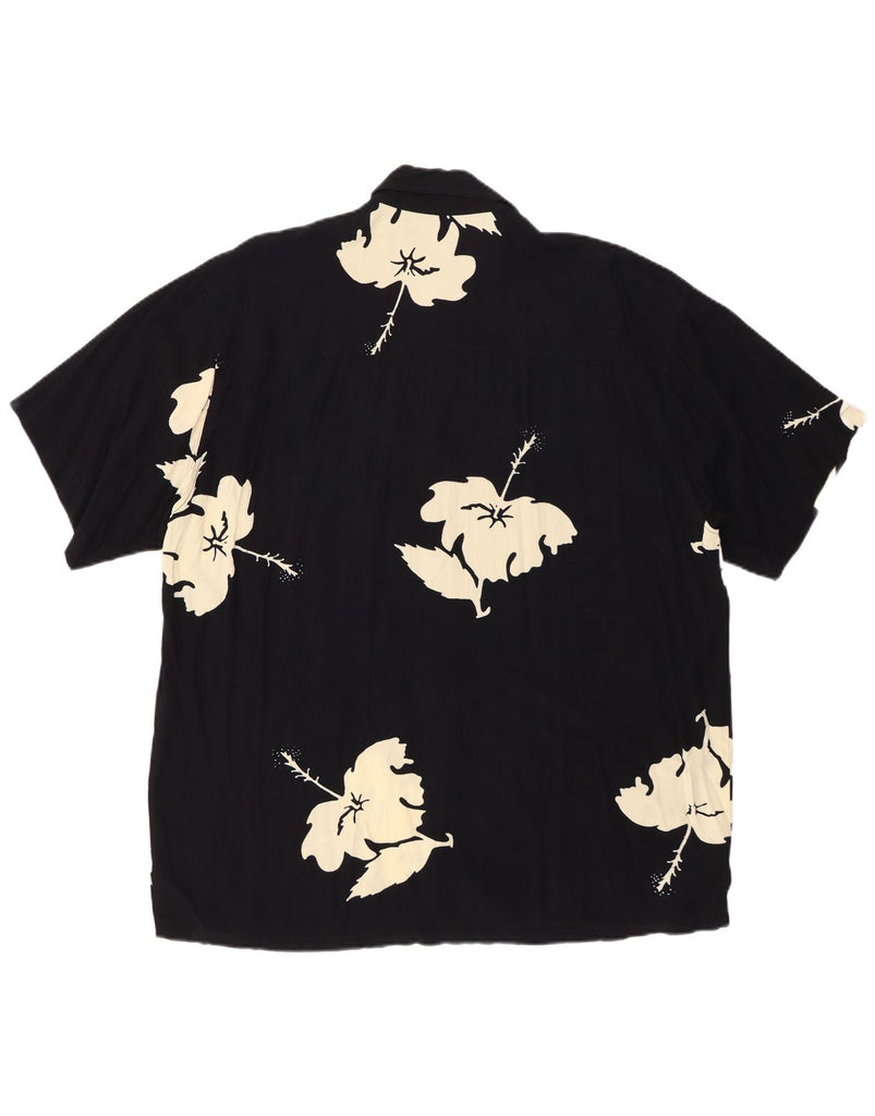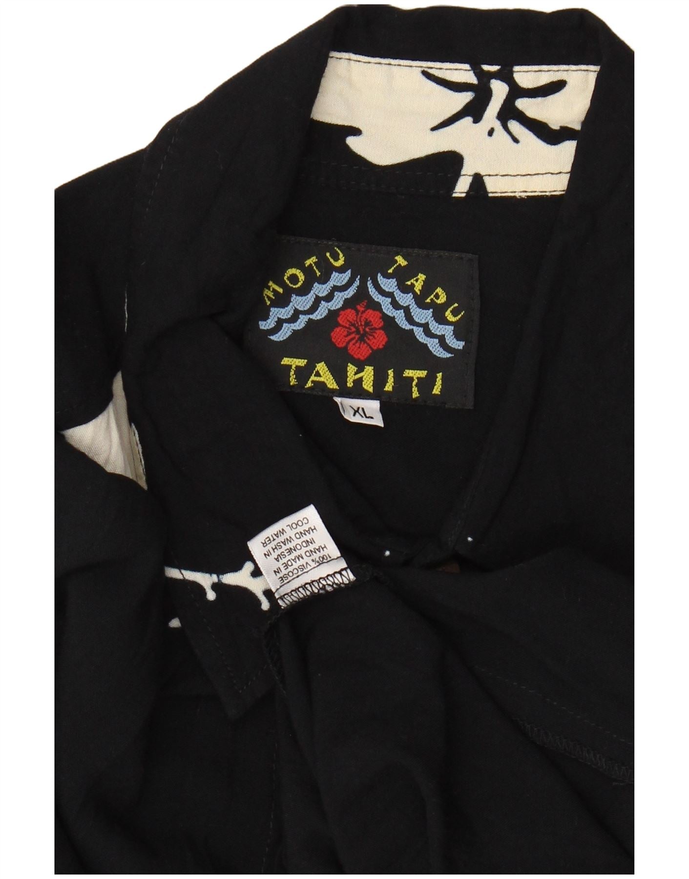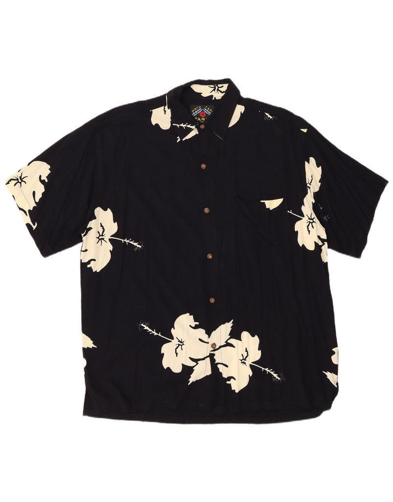 MOTU TAPU TAHITI Мужская рубашка с коротким рукавом XL, черная вискоза с цветочным принтом