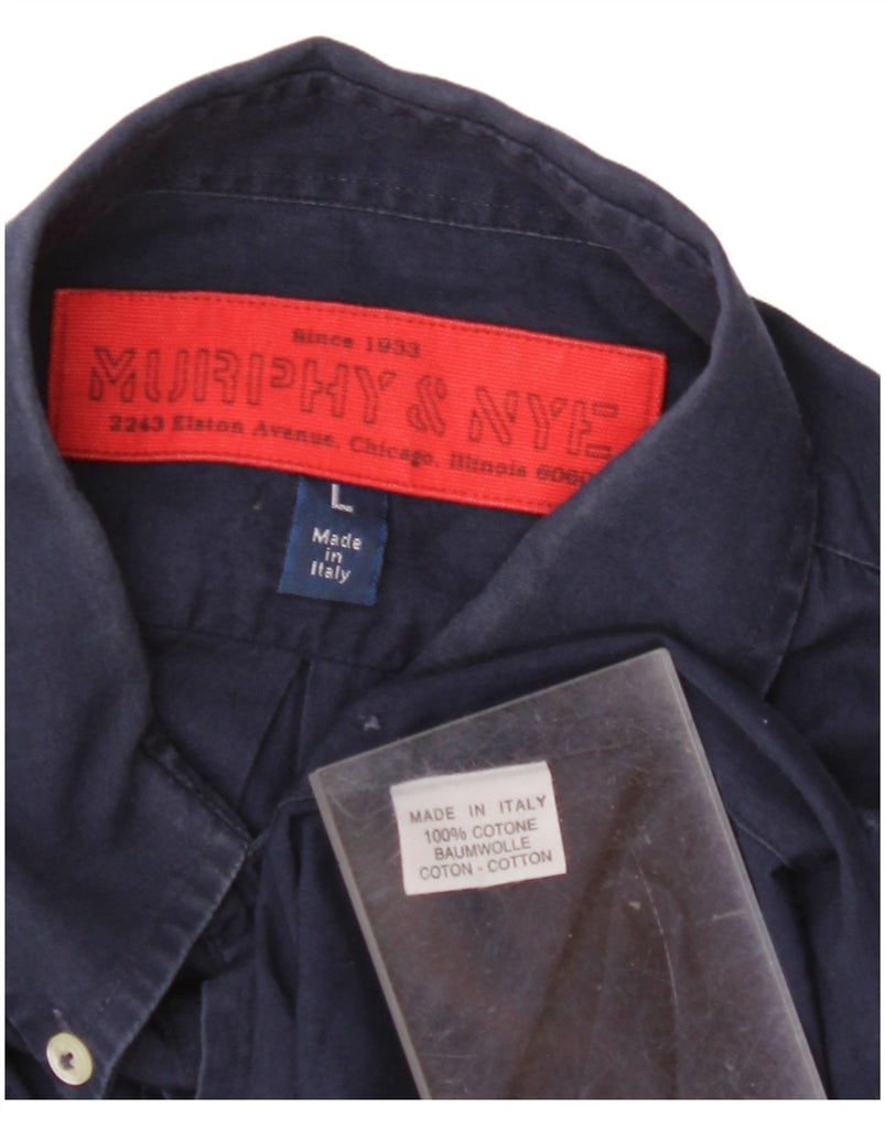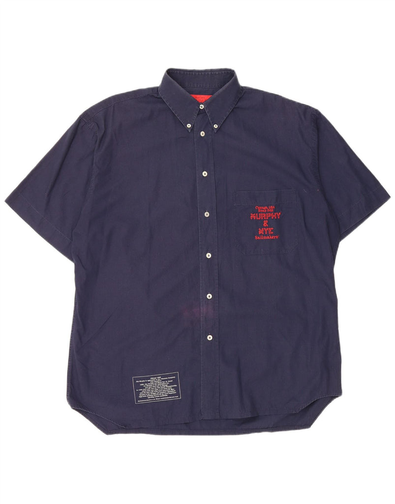 MURPHY & NYE Mens Graphic Short Sleeve Shirt Large Navy Blue Cotton