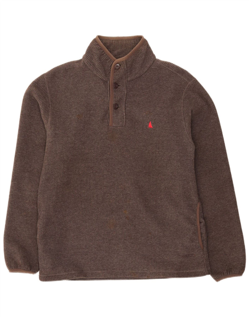 MUSTO Mens Button Neck Sweatshirt Jumper Large Brown Polyester
