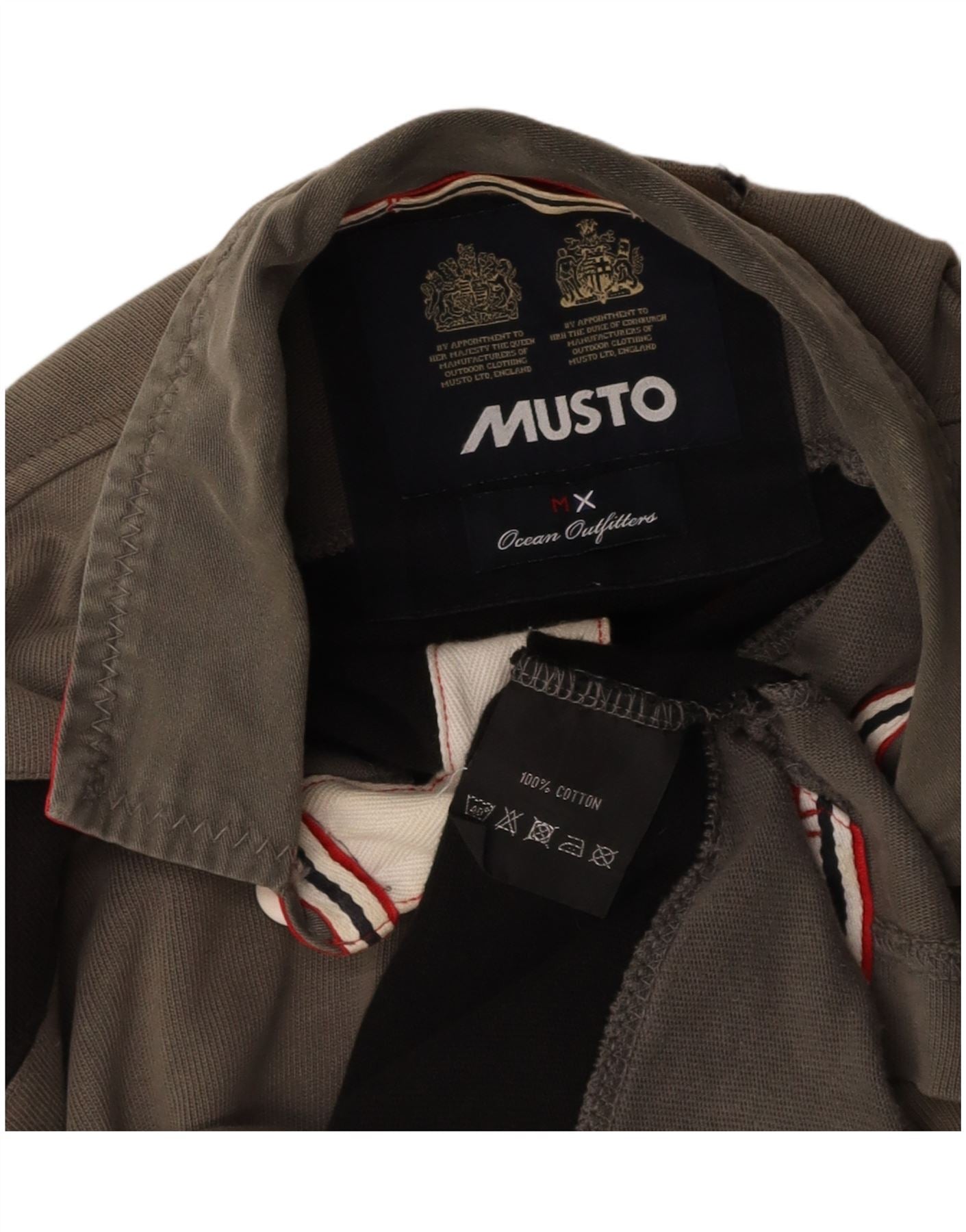 MUSTO Mens Graphic Long Sleeve Polo Shirt Medium Grey Striped Cotton