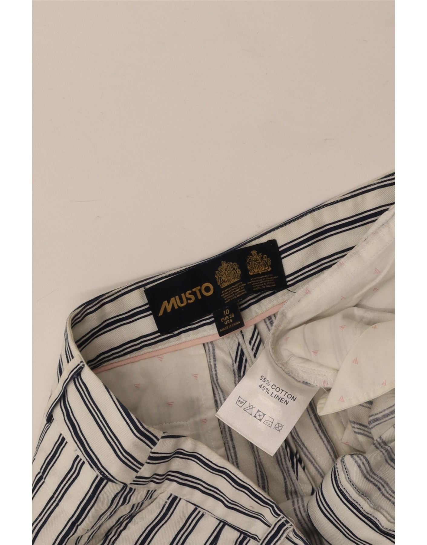 MUSTO Женские шорты чинос с завязками UK 10, маленькие W27, хлопок в белую полоску