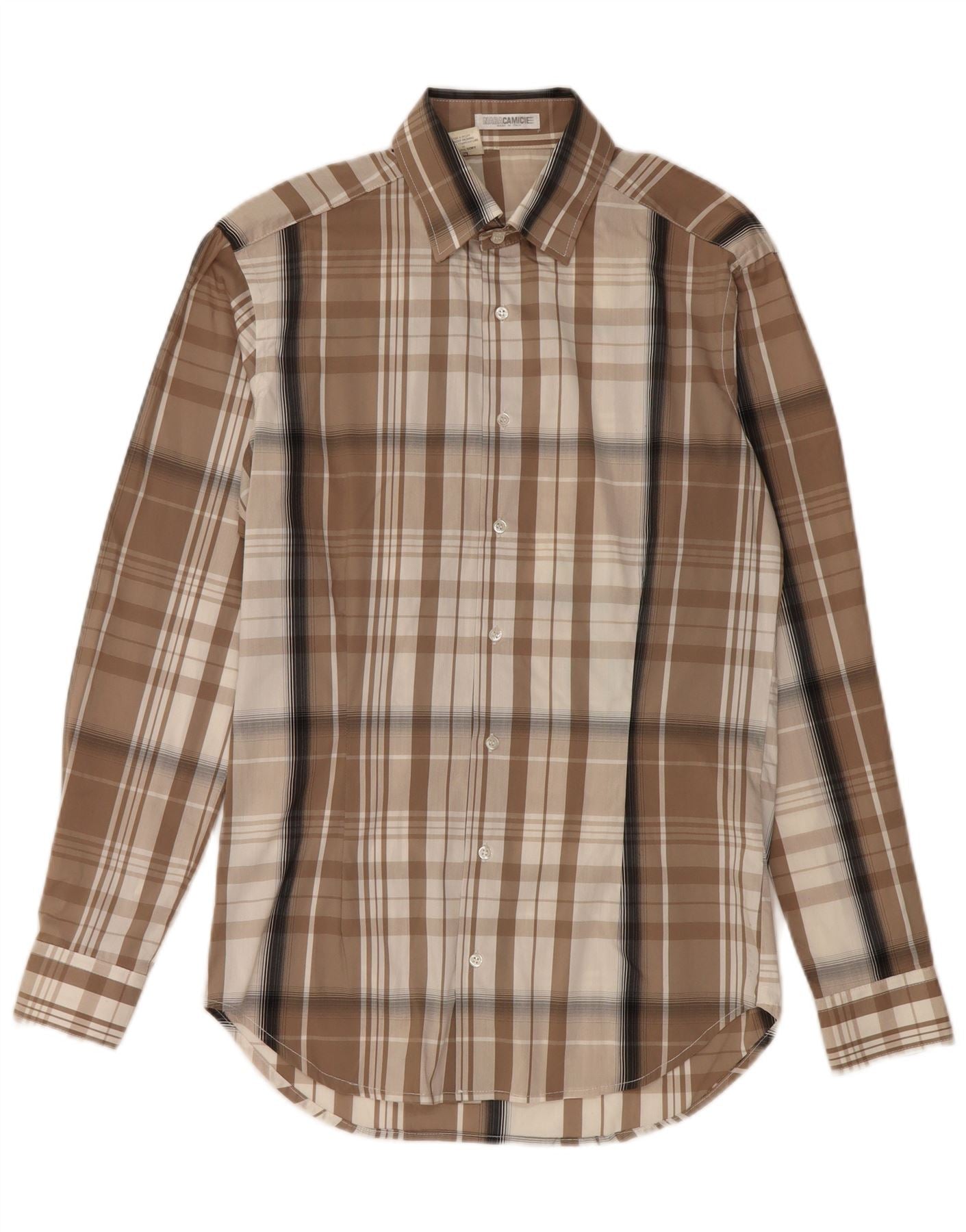 NARACAMICIE Мужская рубашка маленькая коричневая клетка в клетку, хлопок