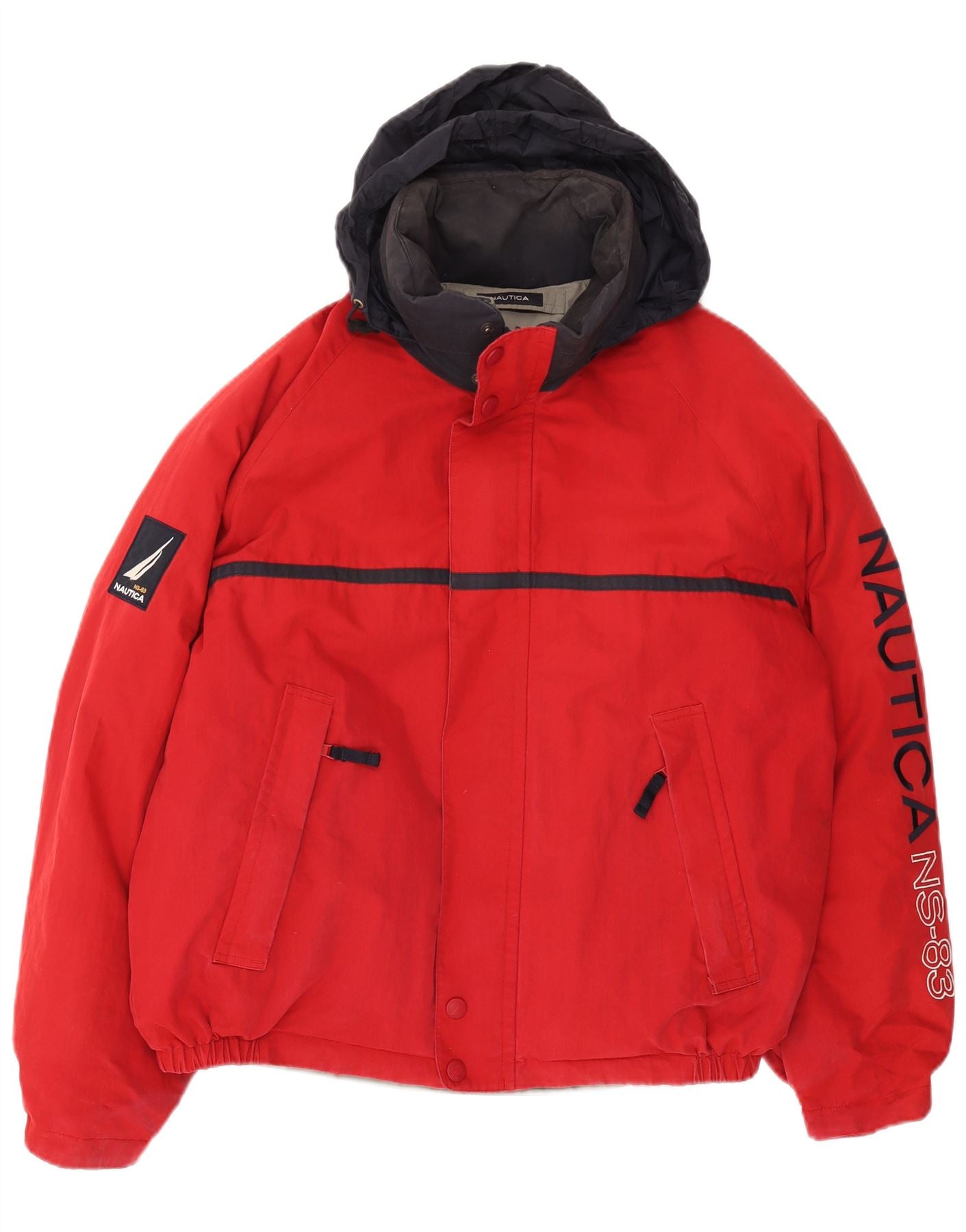 Мужская двусторонняя куртка с капюшоном NAUTICA UK 40, большая красная с цветными блоками