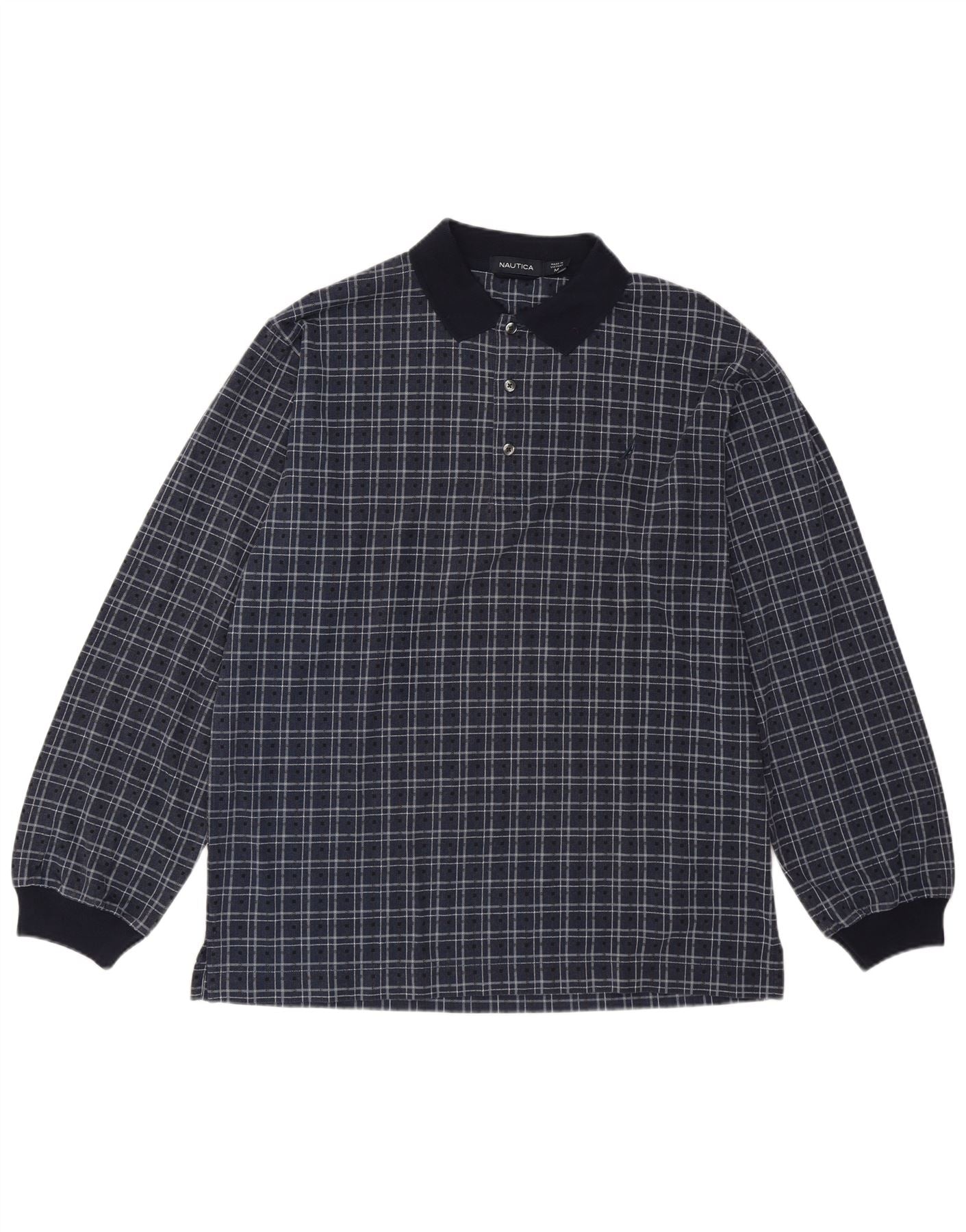 Мужская рубашка поло Nautica с длинным рукавом, средний темно-синий цвет в клетку, хлопок