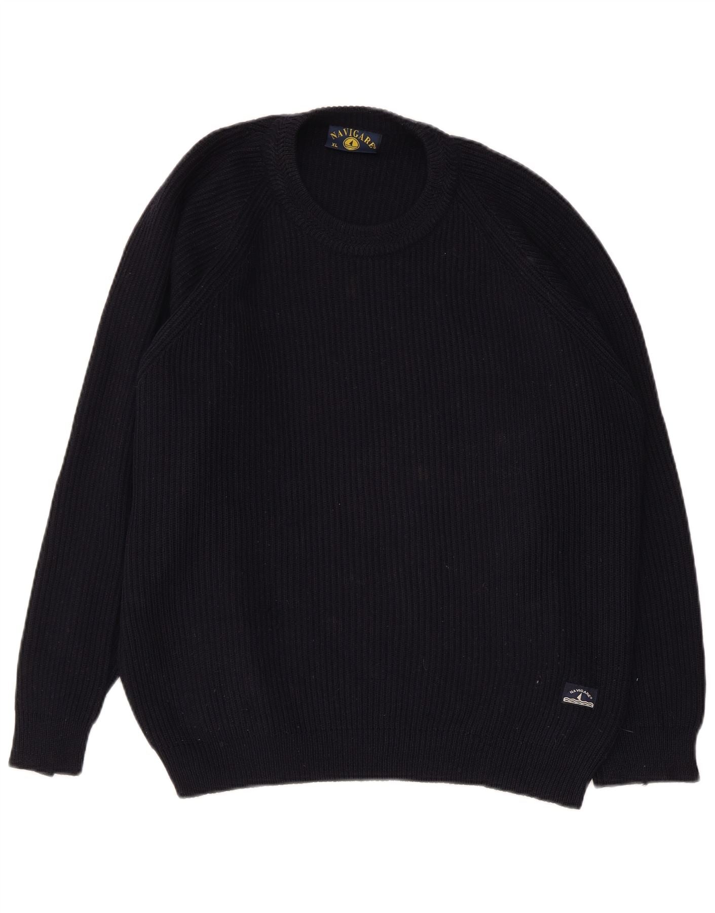 NAVIGARE Womens Crew Neck Jumper Sweater UK 18 XL Navy Blue Wool
