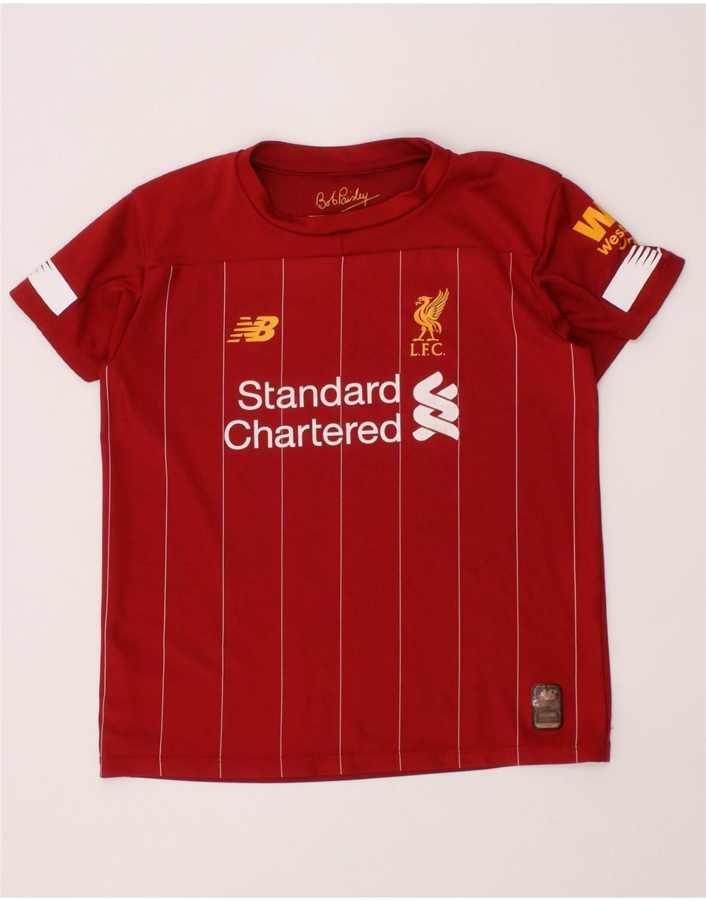 NEW BALANCE Boys Liverpool Graphic T-Shirt Top 4-5 Years Red Striped