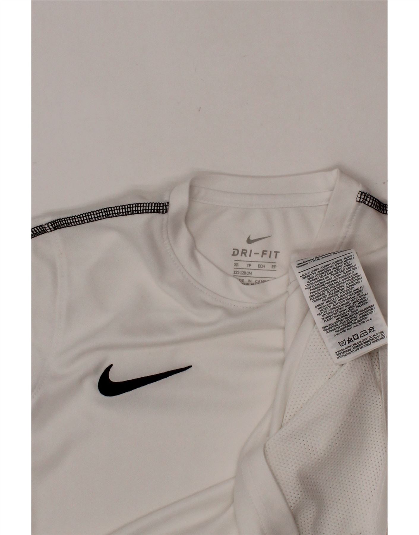 Футболка NIKE для мальчиков Dri Fit, топ 6–7 лет, XS, белый полиэстер с цветными блоками