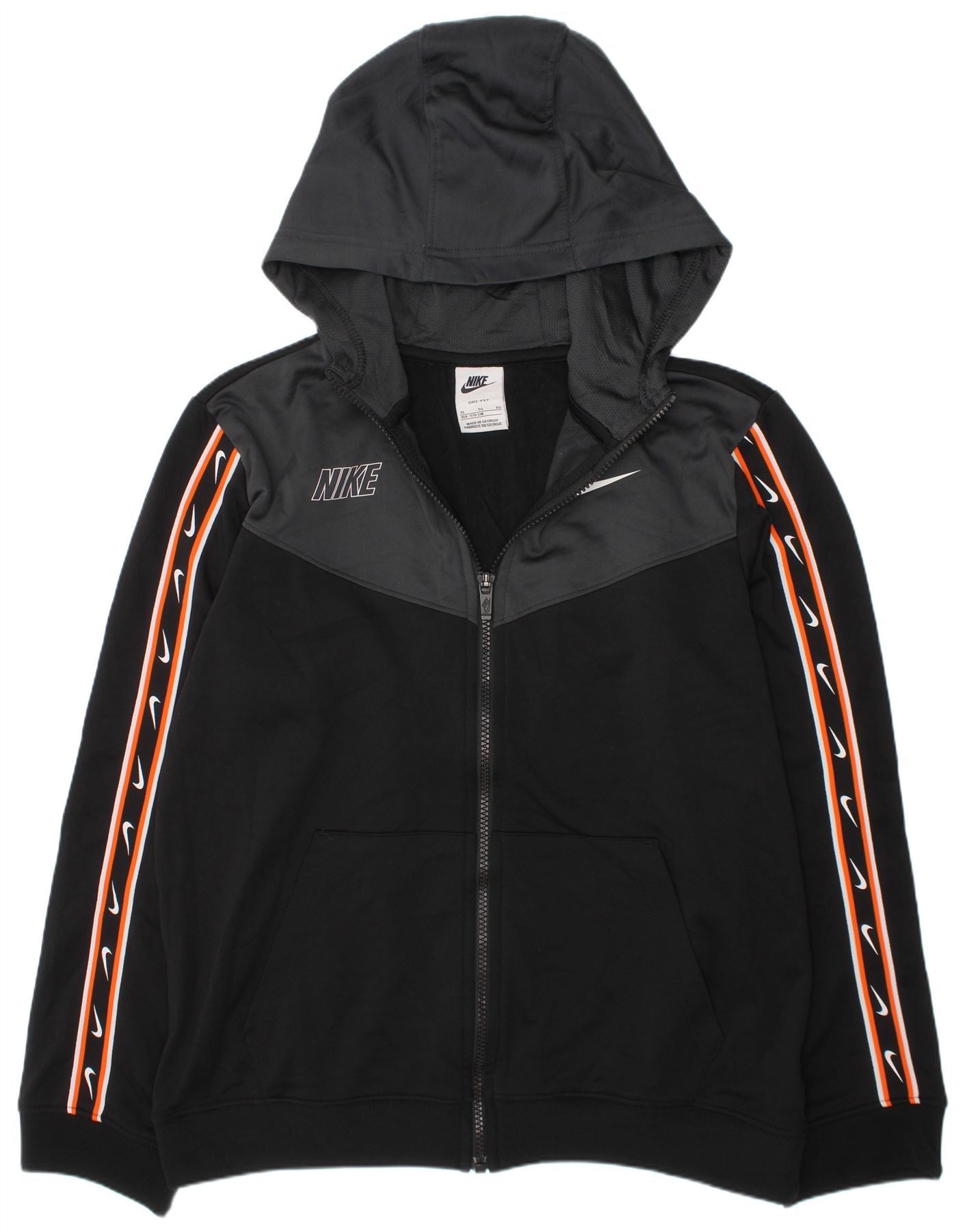 Свитер с капюшоном NIKE для мальчиков Dri Fit на молнии, 13–14 лет, размер XL, черный с цветными блоками