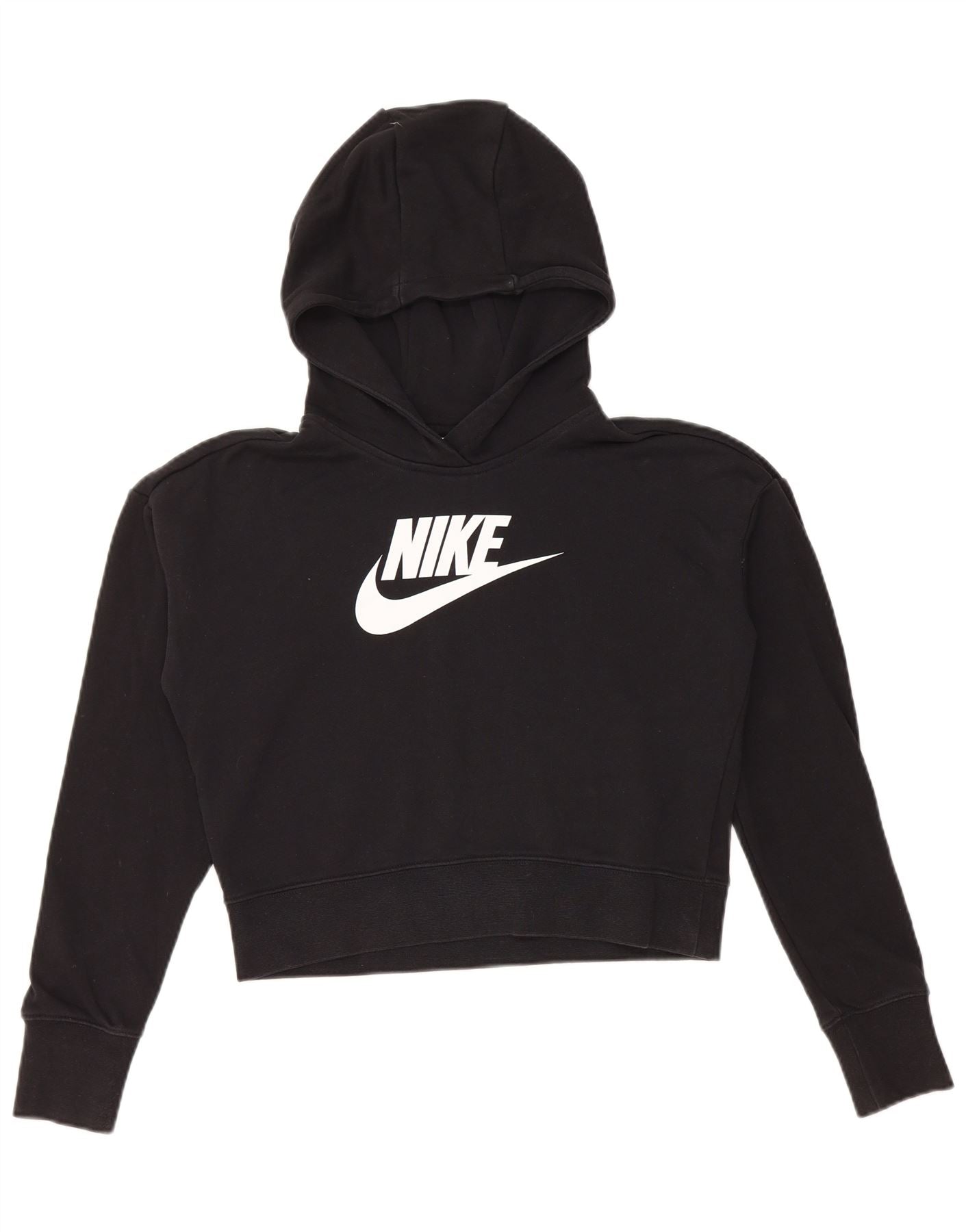 Укороченный джемпер с капюшоном NIKE для девочек, 13–14 лет, размер XL, черный хлопок