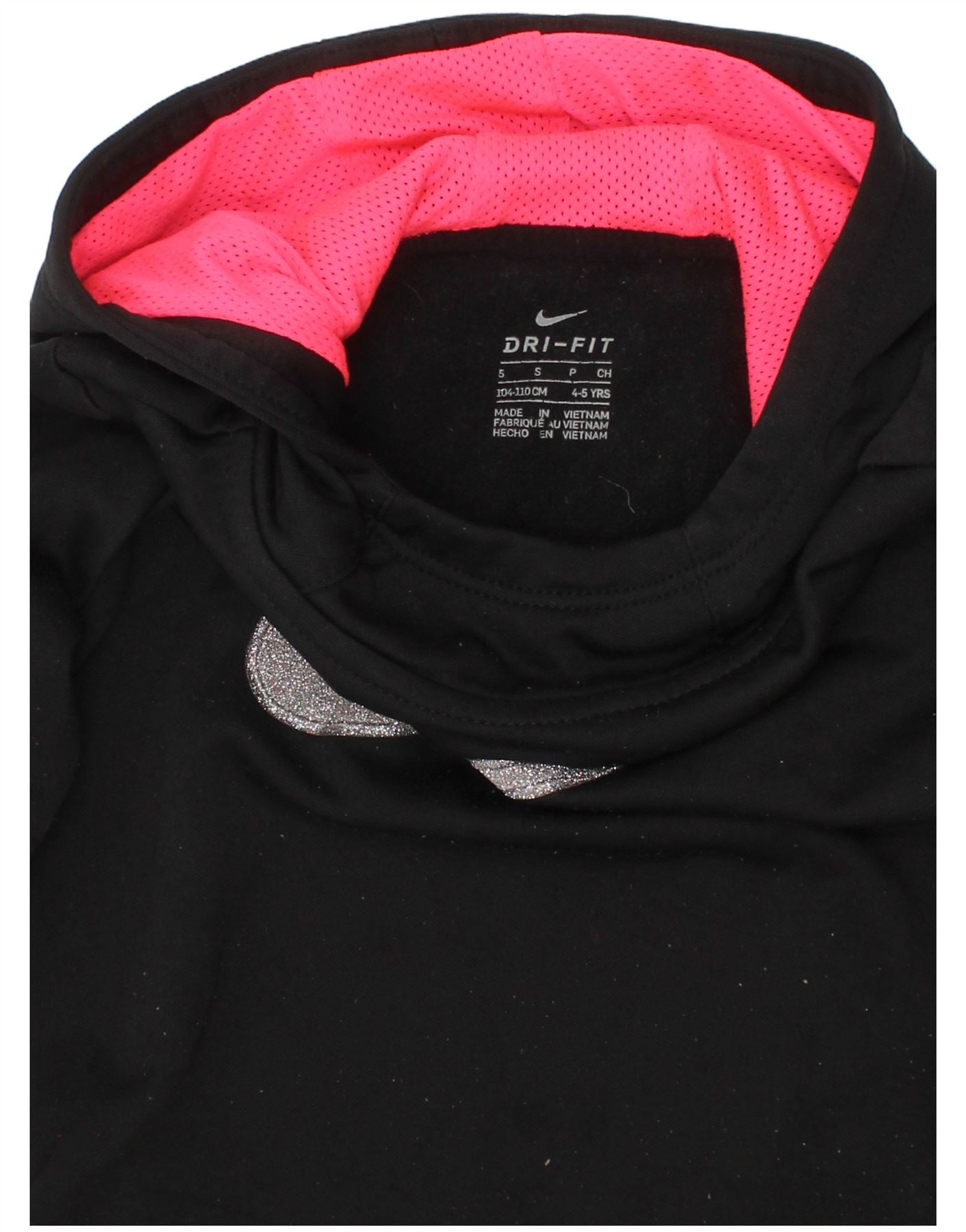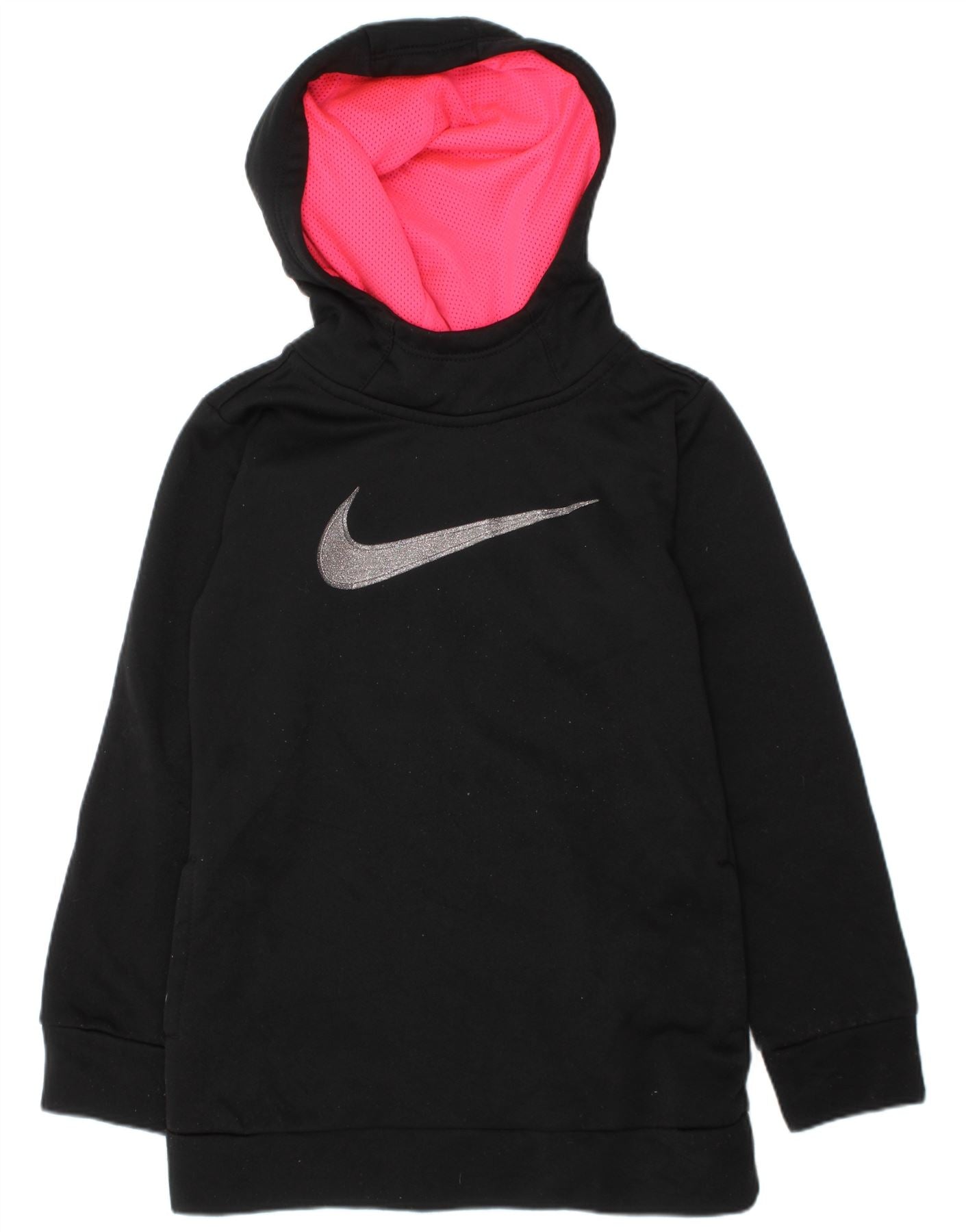 NIKE Girls Dri Fit Graphic Hoodie Jumper 4-5 Years Small Black Polyester