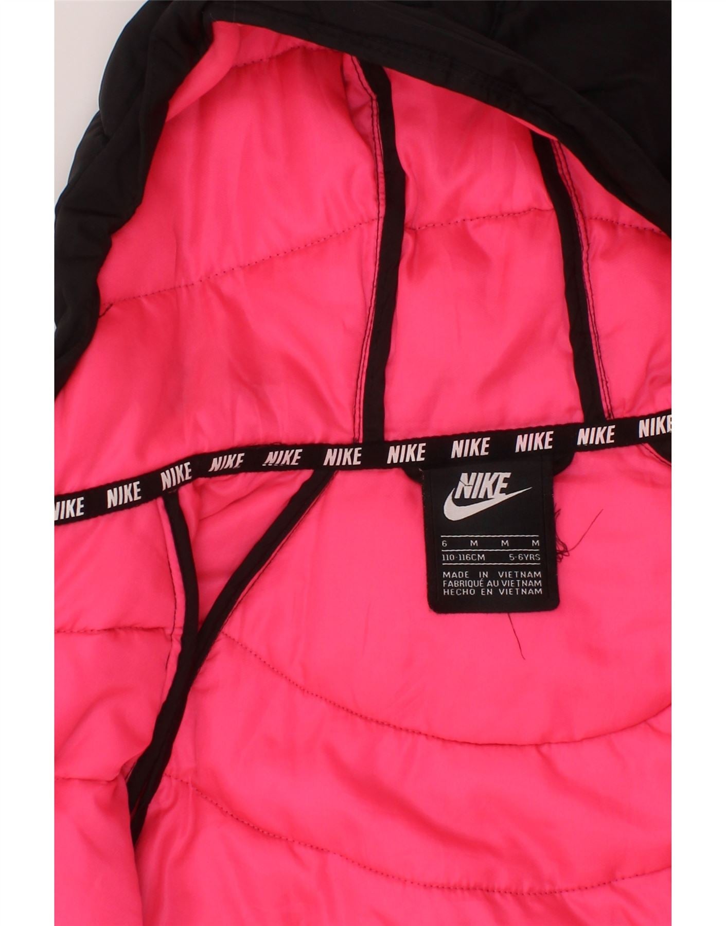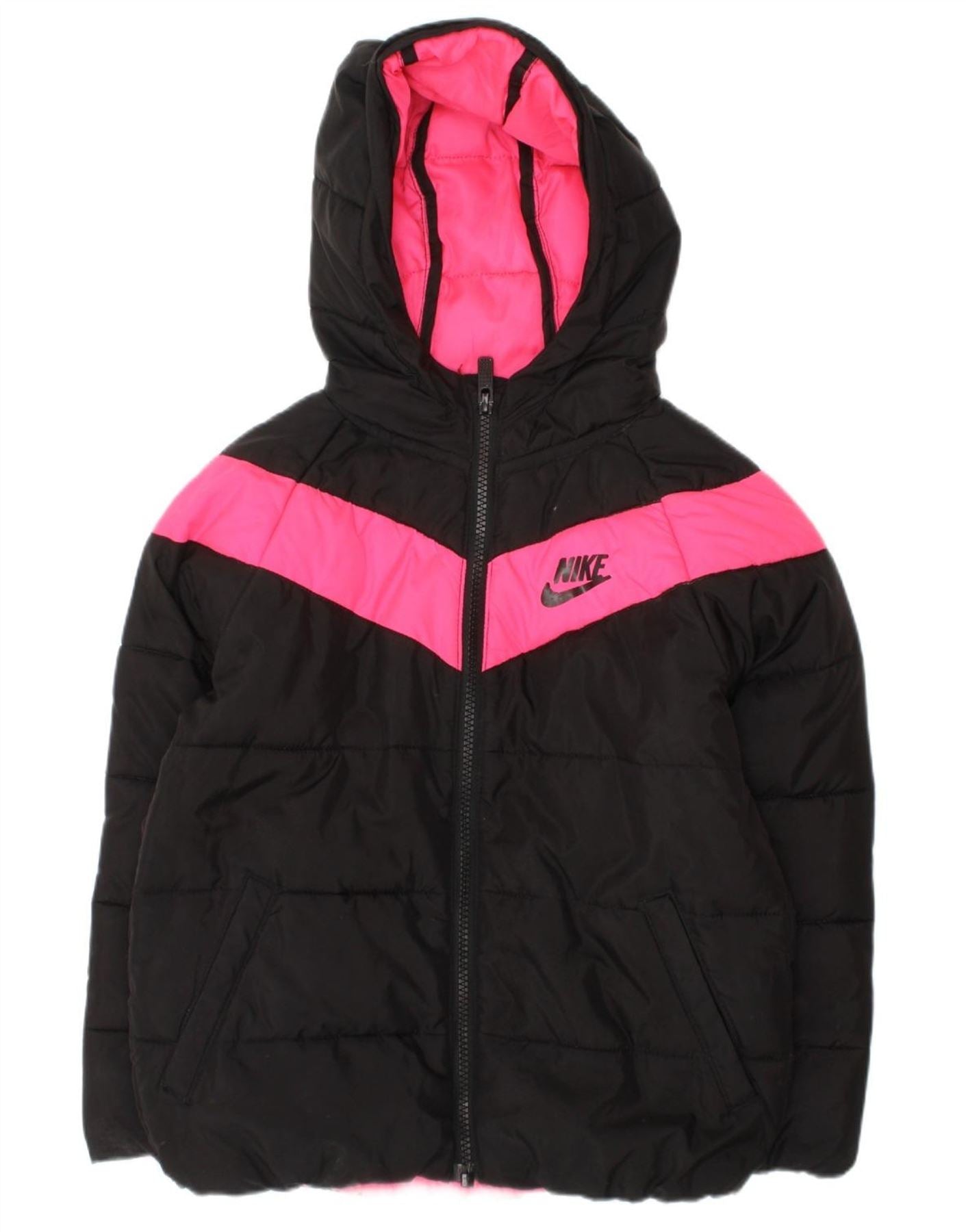 Стеганая куртка с капюшоном NIKE для девочек 5–6 лет, средний черный цвет с блоками