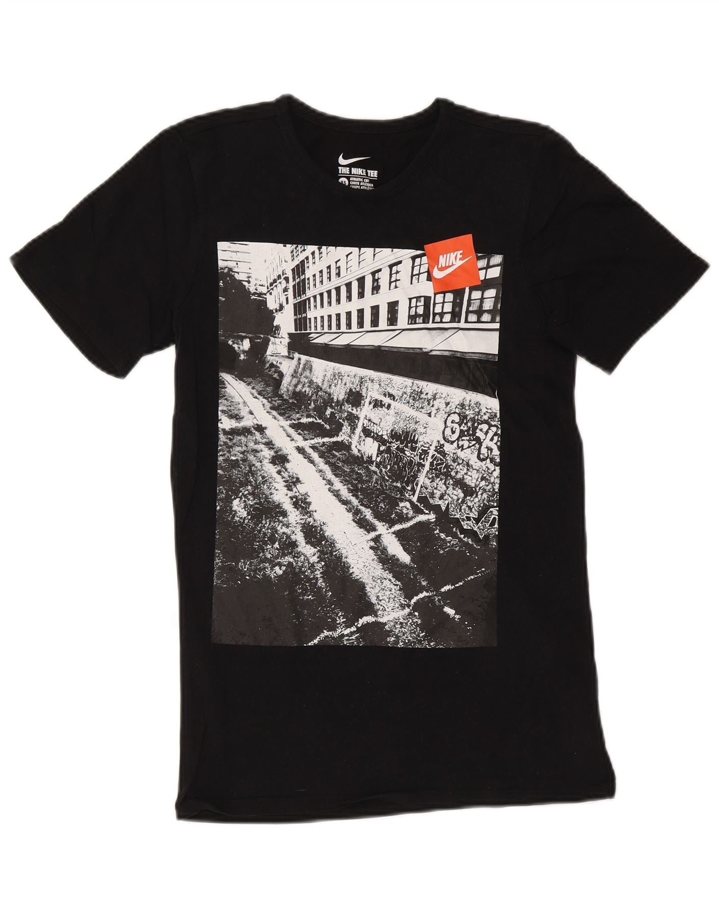 Мужская футболка спортивного кроя NIKE с графическим рисунком, топ XS, черный хлопок