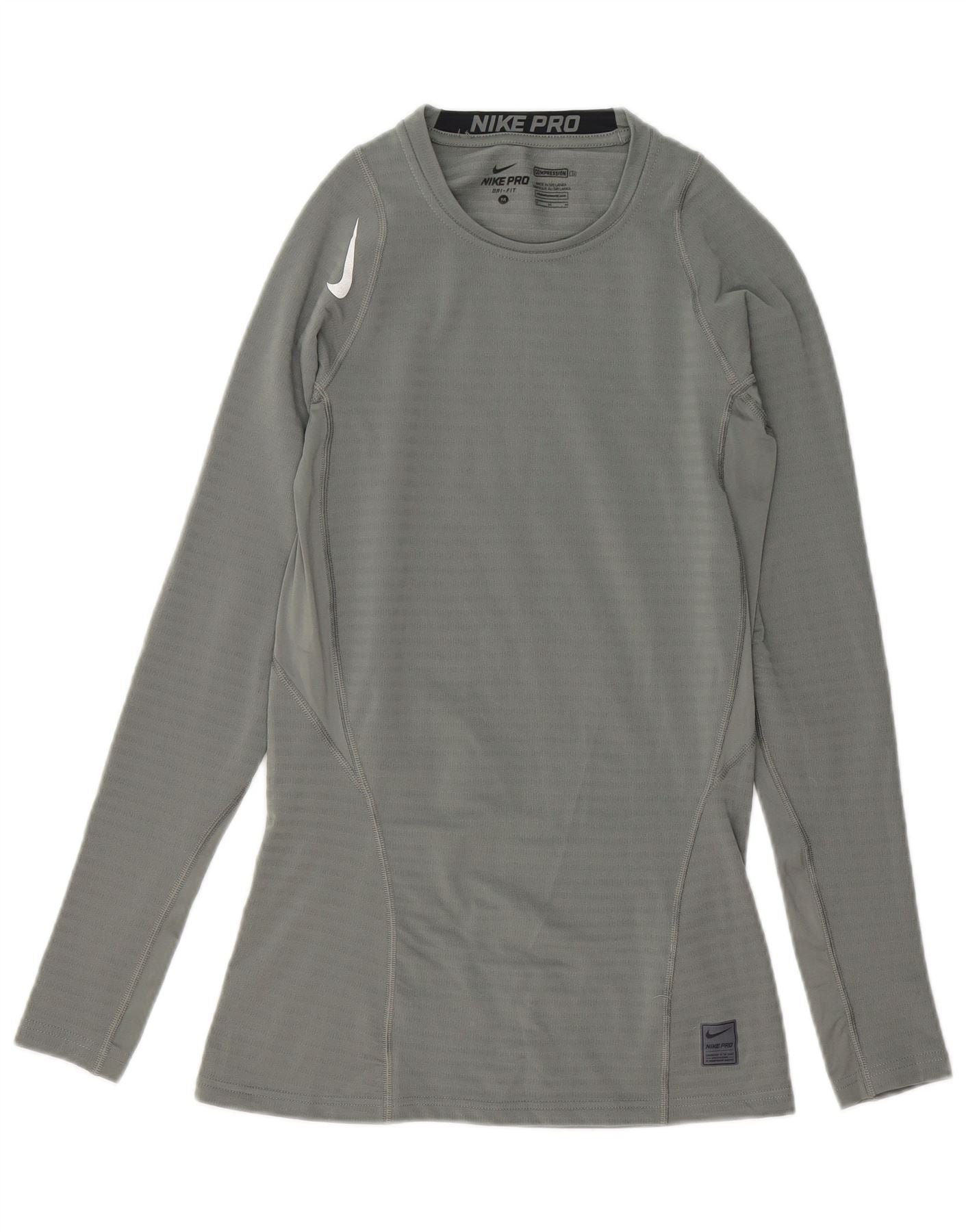 Мужские кроссовки Nike Dri Fit Graphic Top с длинным рукавом UK 14, средний серый полиэстер