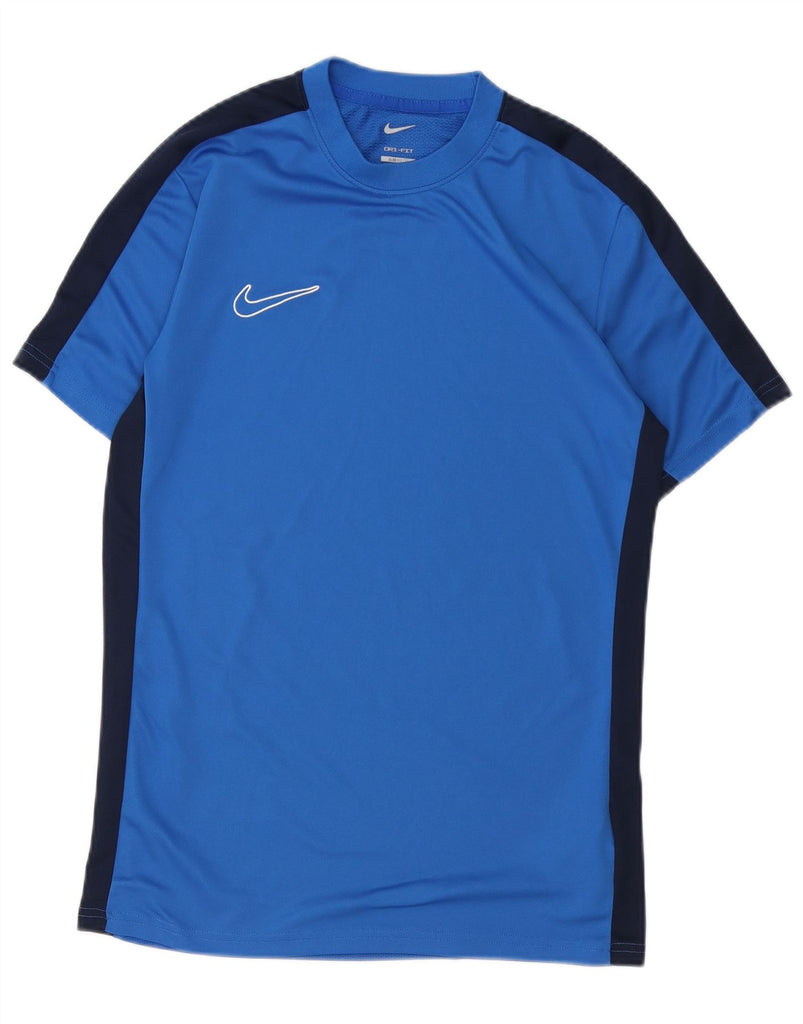 NIKE Mens Dri Fit Slim Fit T-Shirt Top Medium Blue Colourblock Polyester