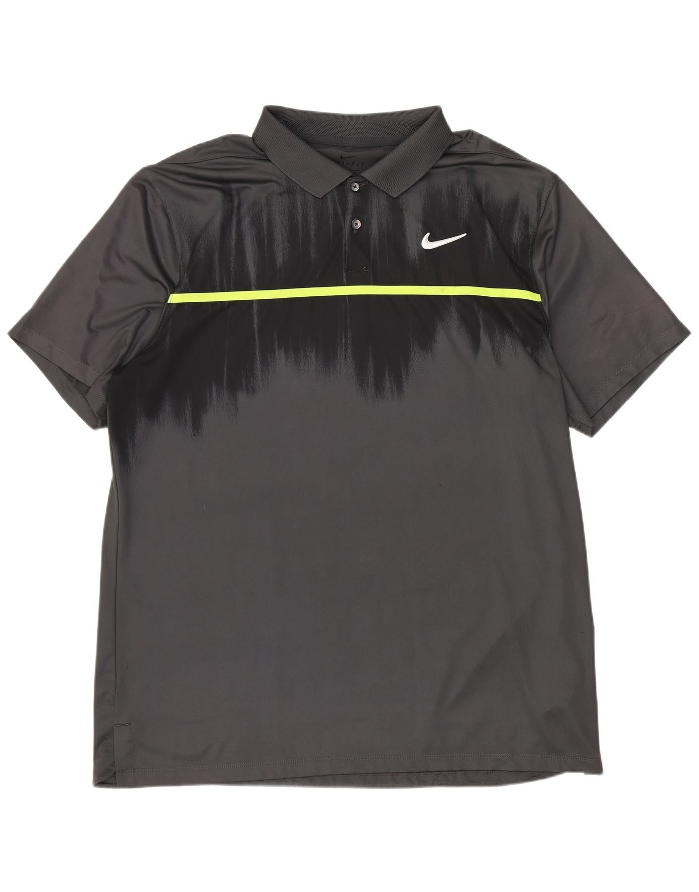 Home > Найк > Мужской > рубашки поло > Мужская рубашка-поло стандартного кроя Nike Dri Fit, большая серая полиэстер с цветными блоками