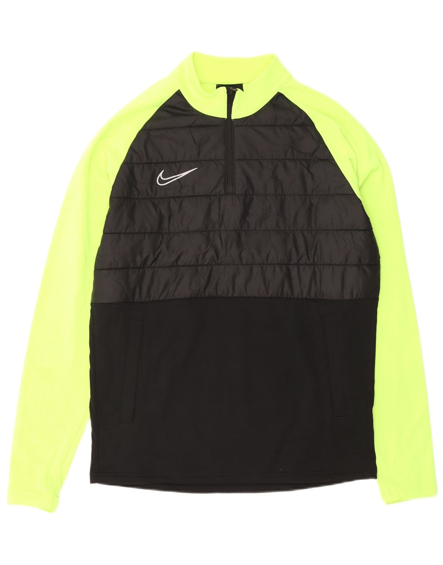 Мужской пуловер с воротником на молнии NIKE Dri Fit, спортивный костюм среднего размера, черный с цветными блоками