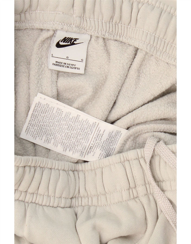 - AI Description: This Nike mens tracksuit trousers joggers are crafted from a soft beige cotton blend knit. The fleece interior provides warmth and comfort. A pull on design with an elasticated waist ensures an easy, relaxed fit. Cuffed ankles and practical pockets add functional detail. The subtle logo accent completes the sporty aesthetic.