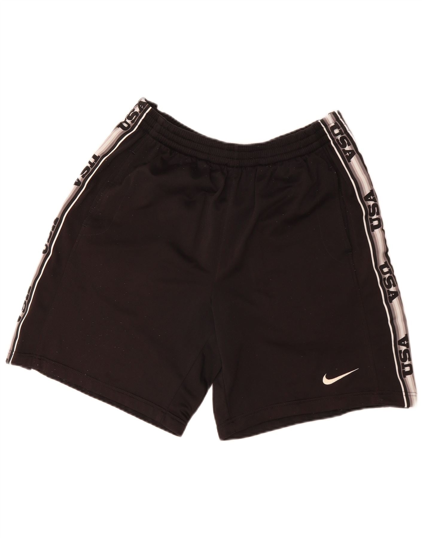 - Описание ИИ: Мужские спортивные шорты Nike из гладкого полиэстера черного цвета. Они имеют спортивную стандартную посадку с эластичной талией. Боковые полосы с надписью «США» и логотипом Nike добавляют узнаваемости бренду. Практичные карманы повышают функциональность. Дизайн предлагает комфорт и стиль для активного ношения.