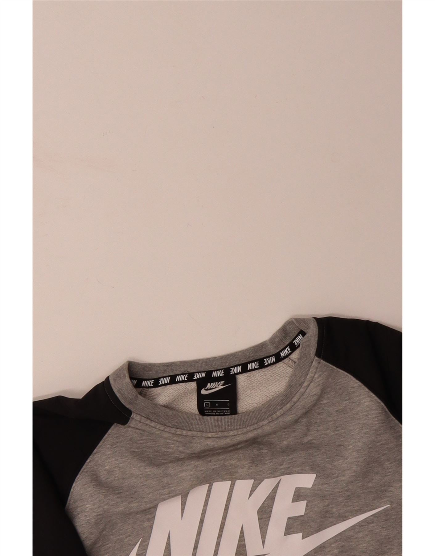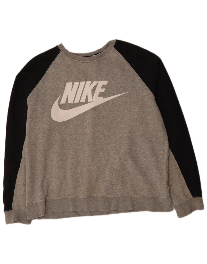 NIKE Mens Graphic Sweatshirt Jumper Large Grey Colourblock Cotton