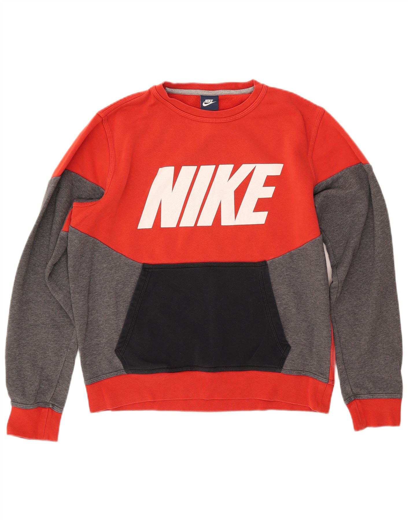 Мужской свитшот с рисунком NIKE, хлопковый джемпер среднего красного цвета с цветными блоками