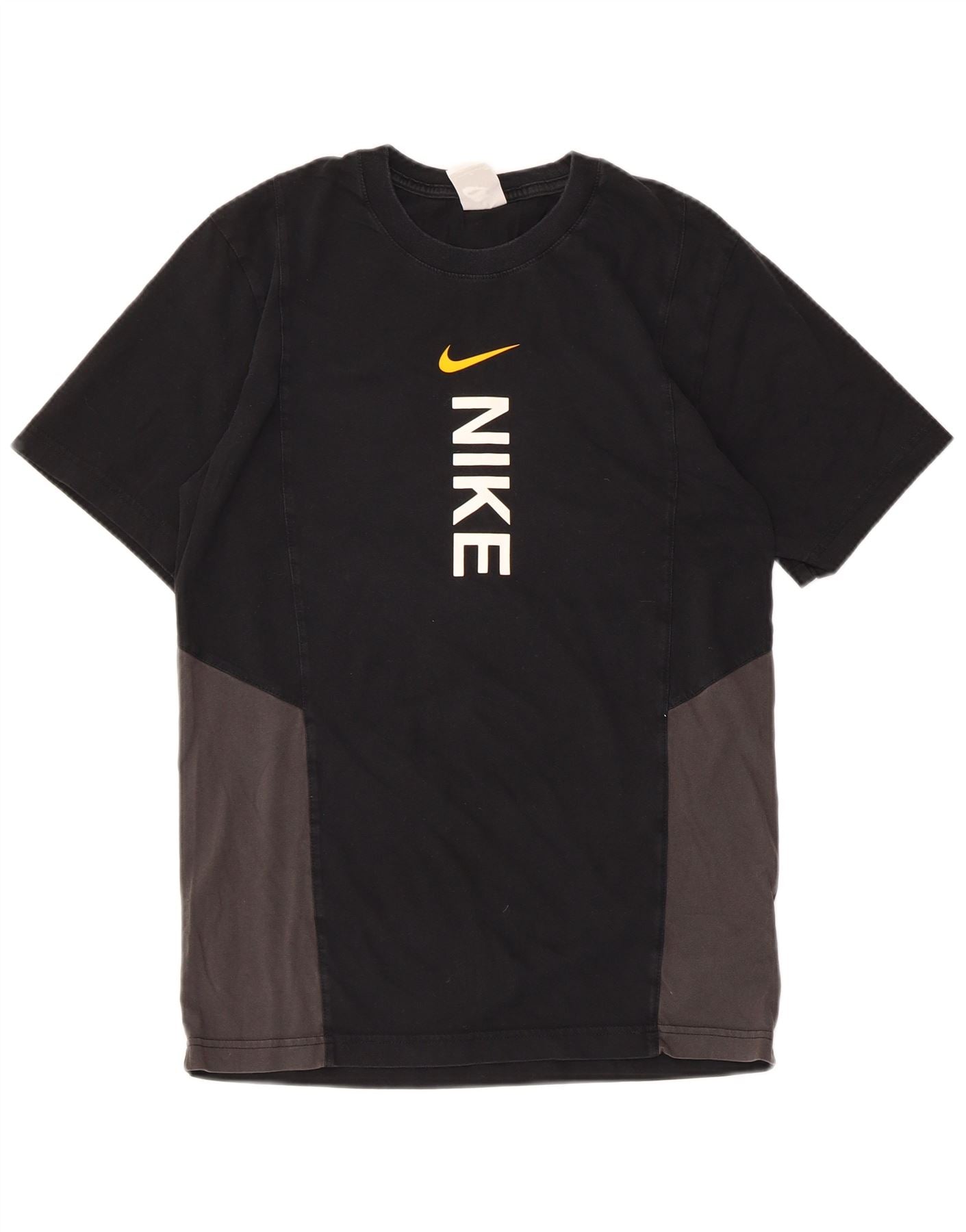Мужская футболка с рисунком NIKE, маленький черный хлопковый топ с цветными блоками