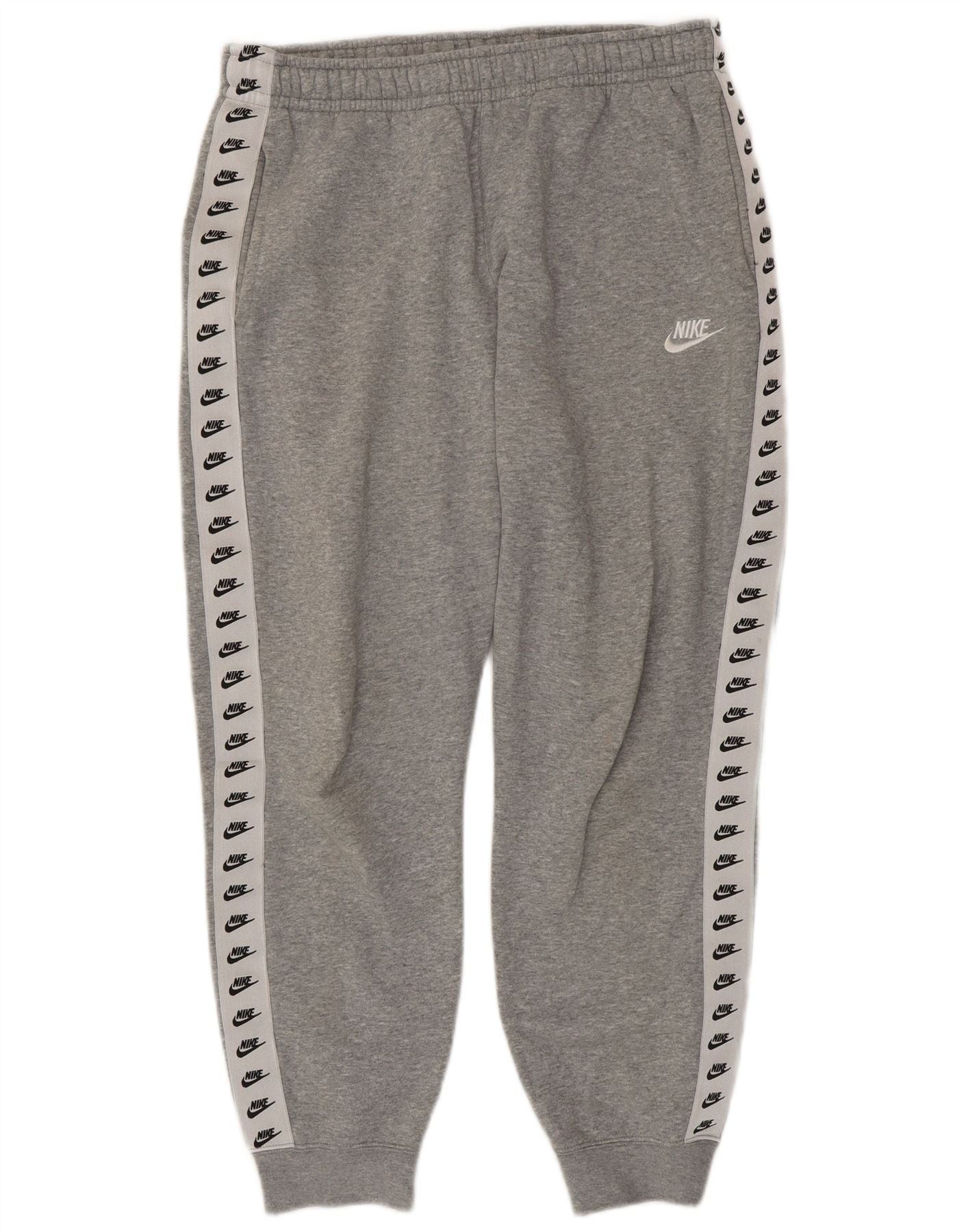 - Описание ИИ: Мужские спортивные джоггеры Nike изготовлены из мягкой серой смесовой ткани, комфортной смеси хлопка и полиэстера. Они имеют эластичную талию с кулиской для регулируемой посадки. Классический крой включает практичные карманы. Проклеенные боковые стороны с повторяющимися логотипами Nike придают модели характерные спортивные детали. Вышитый логотип Nike спереди завершает спортивный образ.