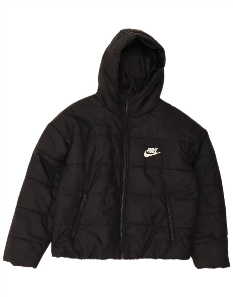NIKE Mens Hooded Graphic Padded Jacket UK 38 Medium Black Polyester