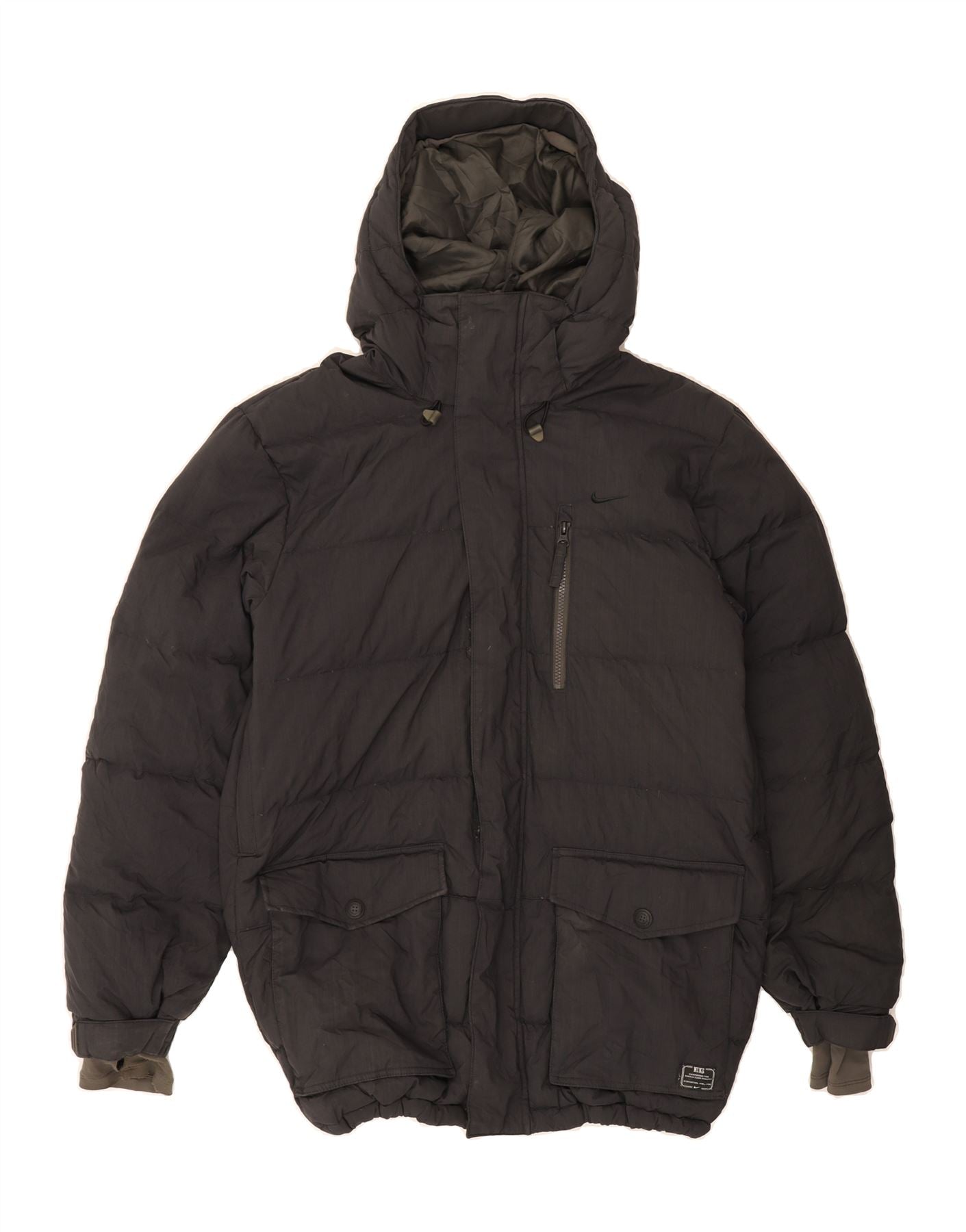 NIKE Mens Hooded Padded Jacket UK 36 Small Grey Polyamide