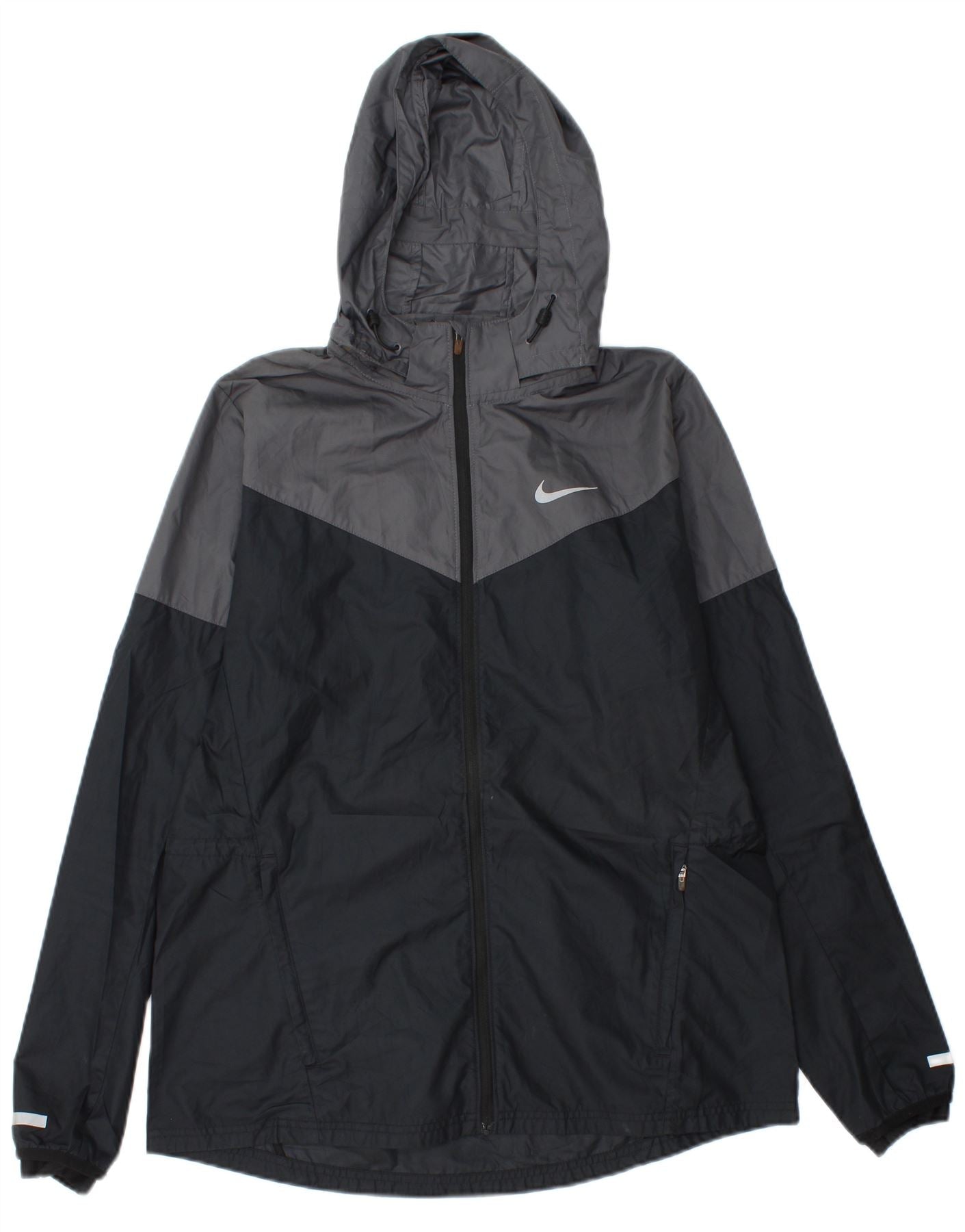 Мужская дождевик с капюшоном NIKE UK 40, большая черная полиэстер с цветными блоками