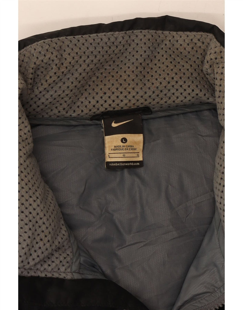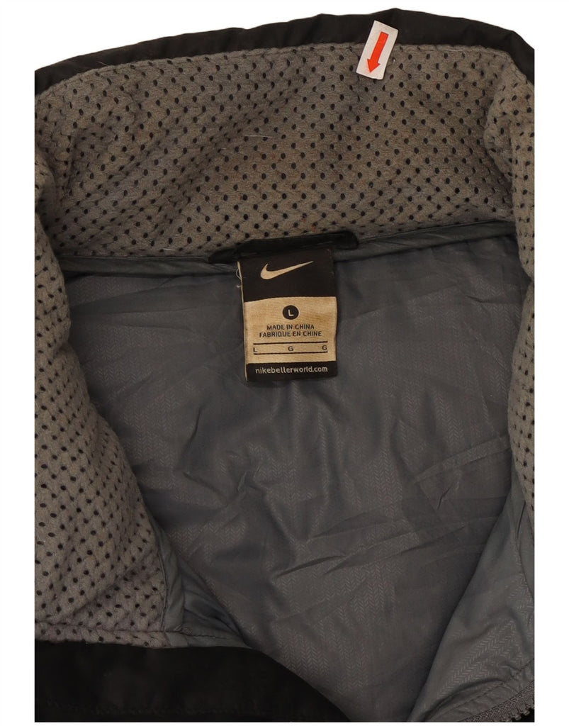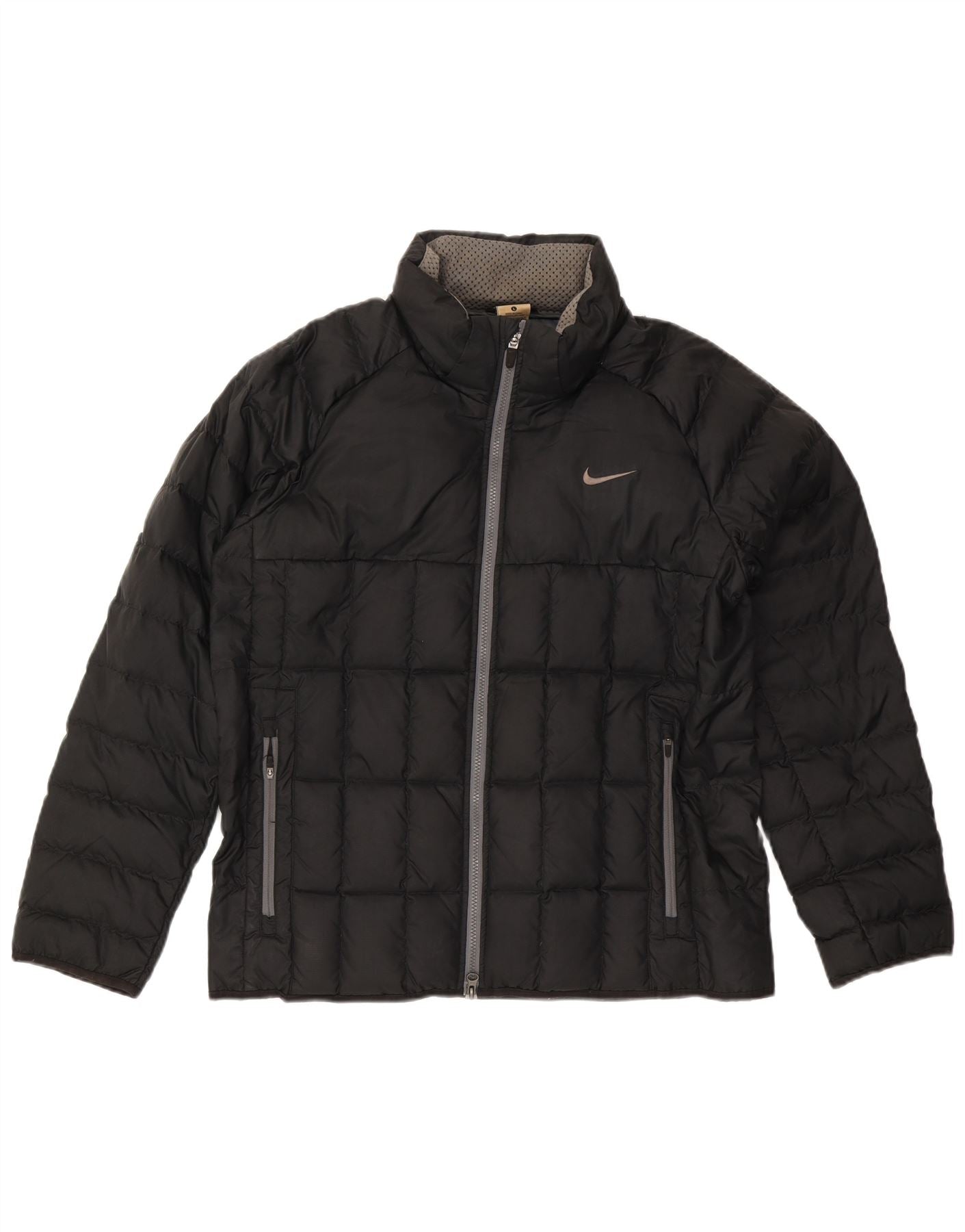 - AI Description: This Nike mens Padded Jacket is crafted from black down fabric with a quilted texture. It features a collared neckline and long sleeves. The full zip closure extends to the top. A regular fit ensures comfortable wear. Practical pockets are included. A subtle logo accent adds brand recognition. The jacket is fully lined for warmth, ideal for winter.
