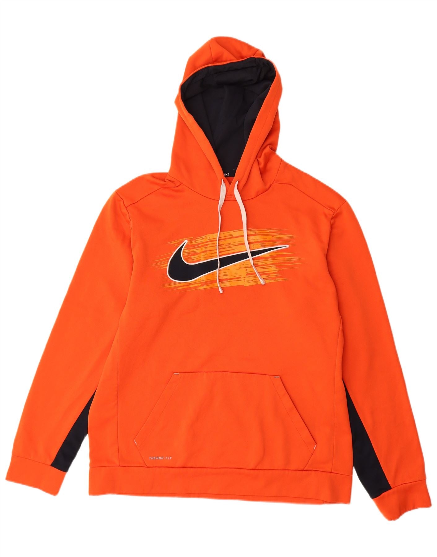 Мужской джемпер с капюшоном NIKE Therma-Fit, большой оранжевый, цветных блоков